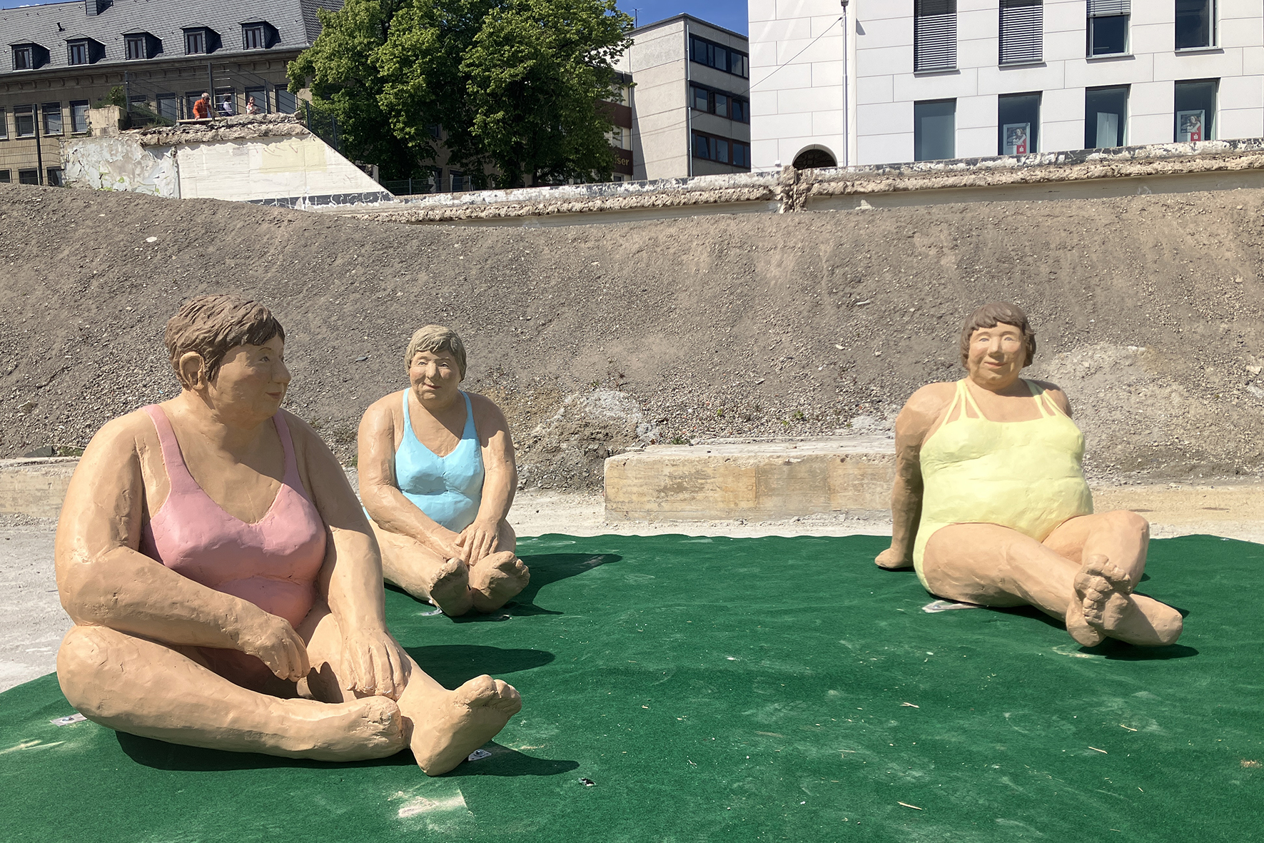 „Die drei Grazien“ bei der Installation „Strandkasten“ in der Baugrube Schillerplatz