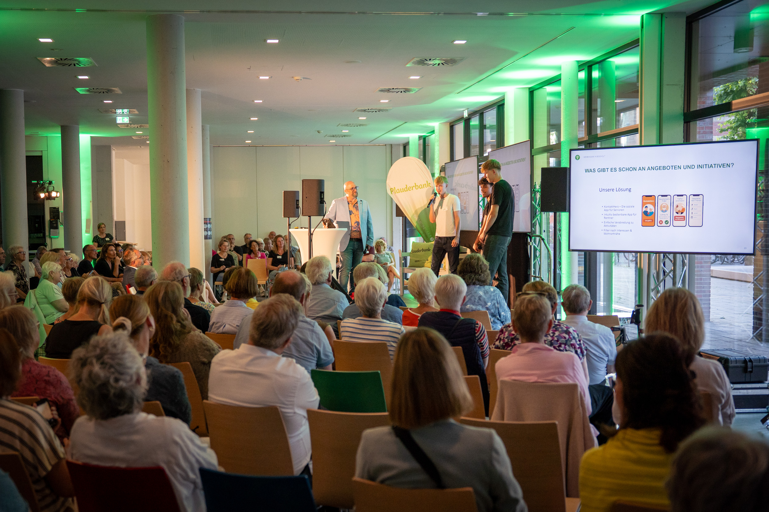 Die Sportabiturienten Moritz Middelkamp, Rian Dero und Jannis Lamhardt präsentierten ihre App-Idee „Kontaktherz“