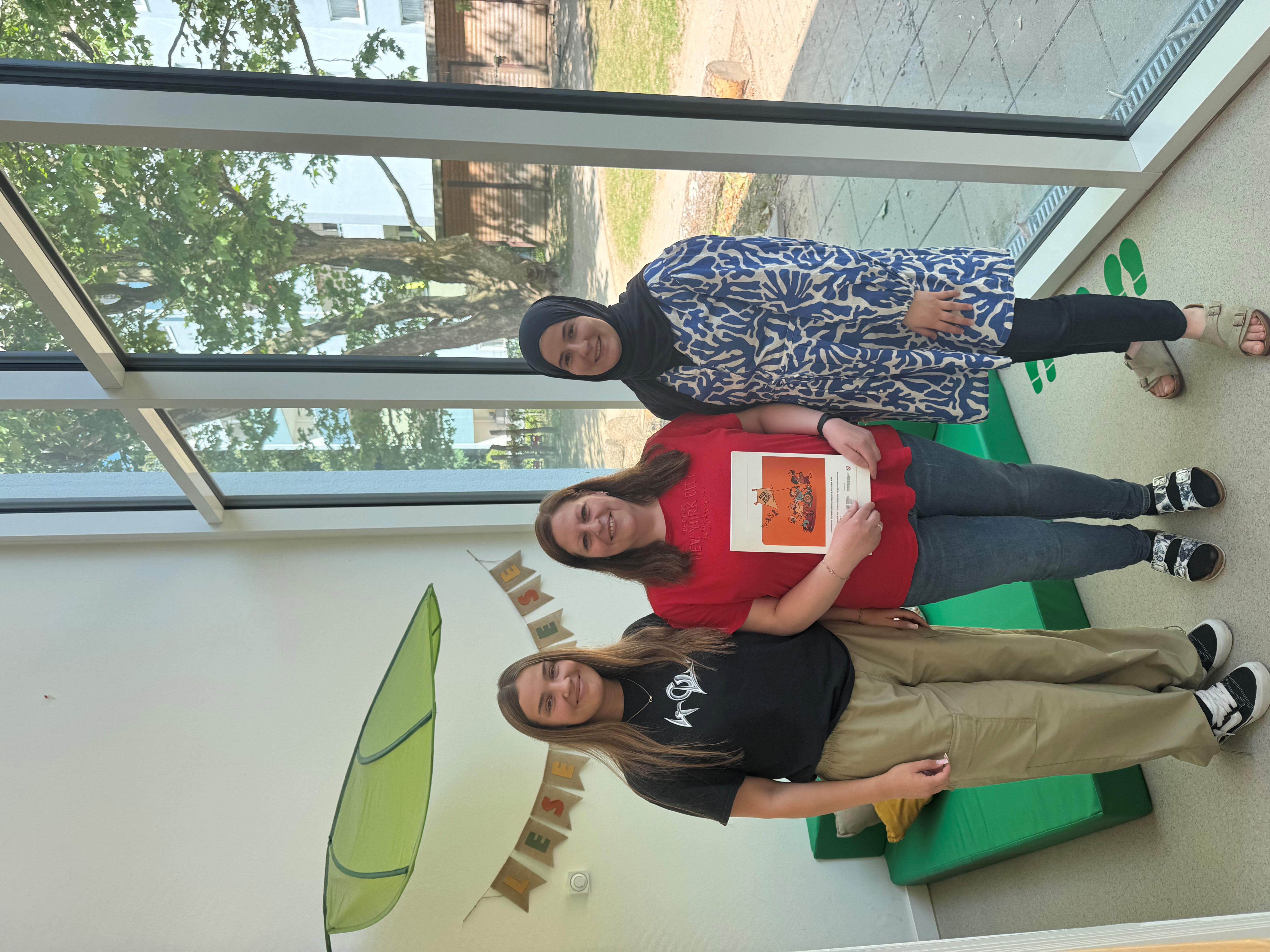 Die Erzieherinnen Larissa Weber (li) und Elisabete Sorbal Martins – beide Ansprechpartnerinnen für das Rucksack-Programm im SPI Familienzentrum und in der KiTa Erlenweg – gemeinsam mit Koordinatorin Berna Kabakcı (r.). Foto Kreis Unna