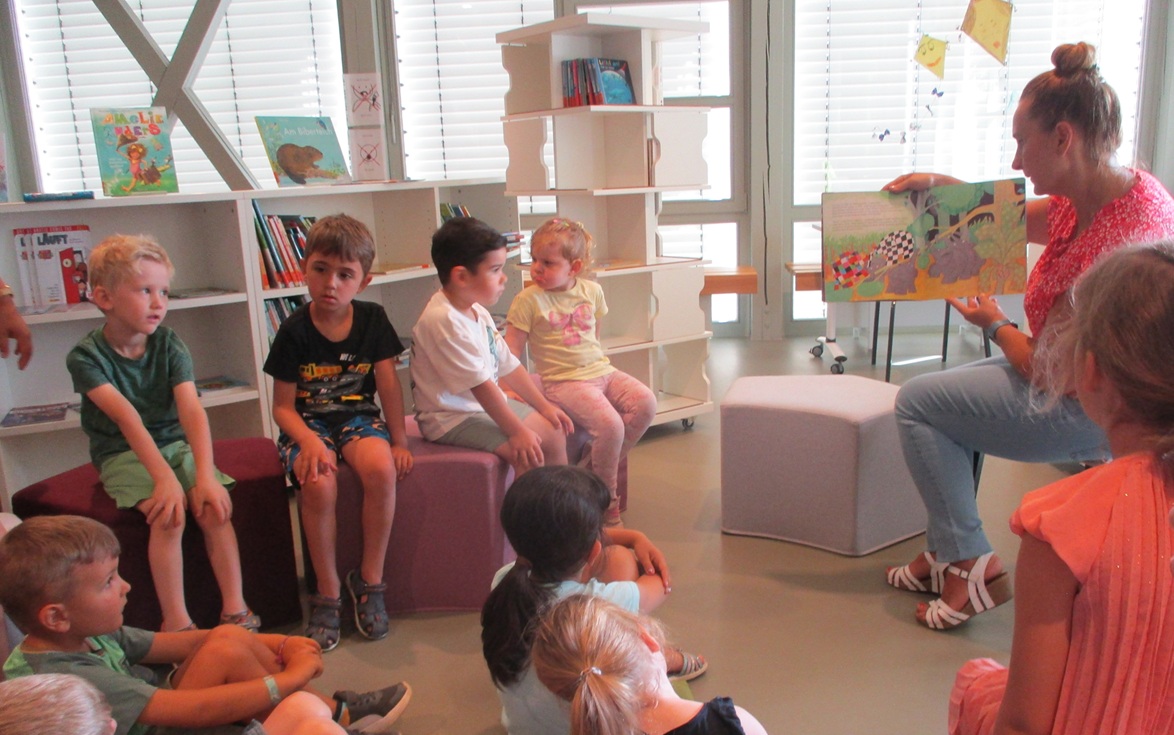 Kinder des Kinderhauses Reinhardshof waren zu Besuch in der Bücherei am Wartberg. Foto: Kinderhaus Reinhardshof