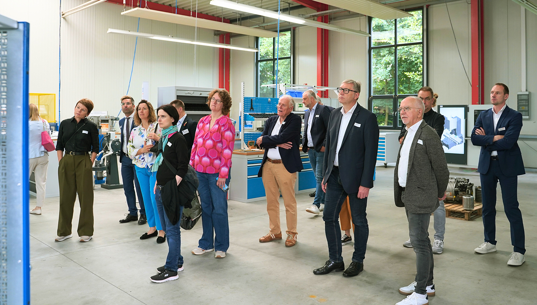 Beim 39. Unternehmerfrühstück warfen die knapp 40 Geschäftsführerinnen und Geschäftsführer aus dem Kreis Steinfurt auch einen Blick in das 1.600 Quadratmeter große Christiani Kompetenzzentrum Rheine.