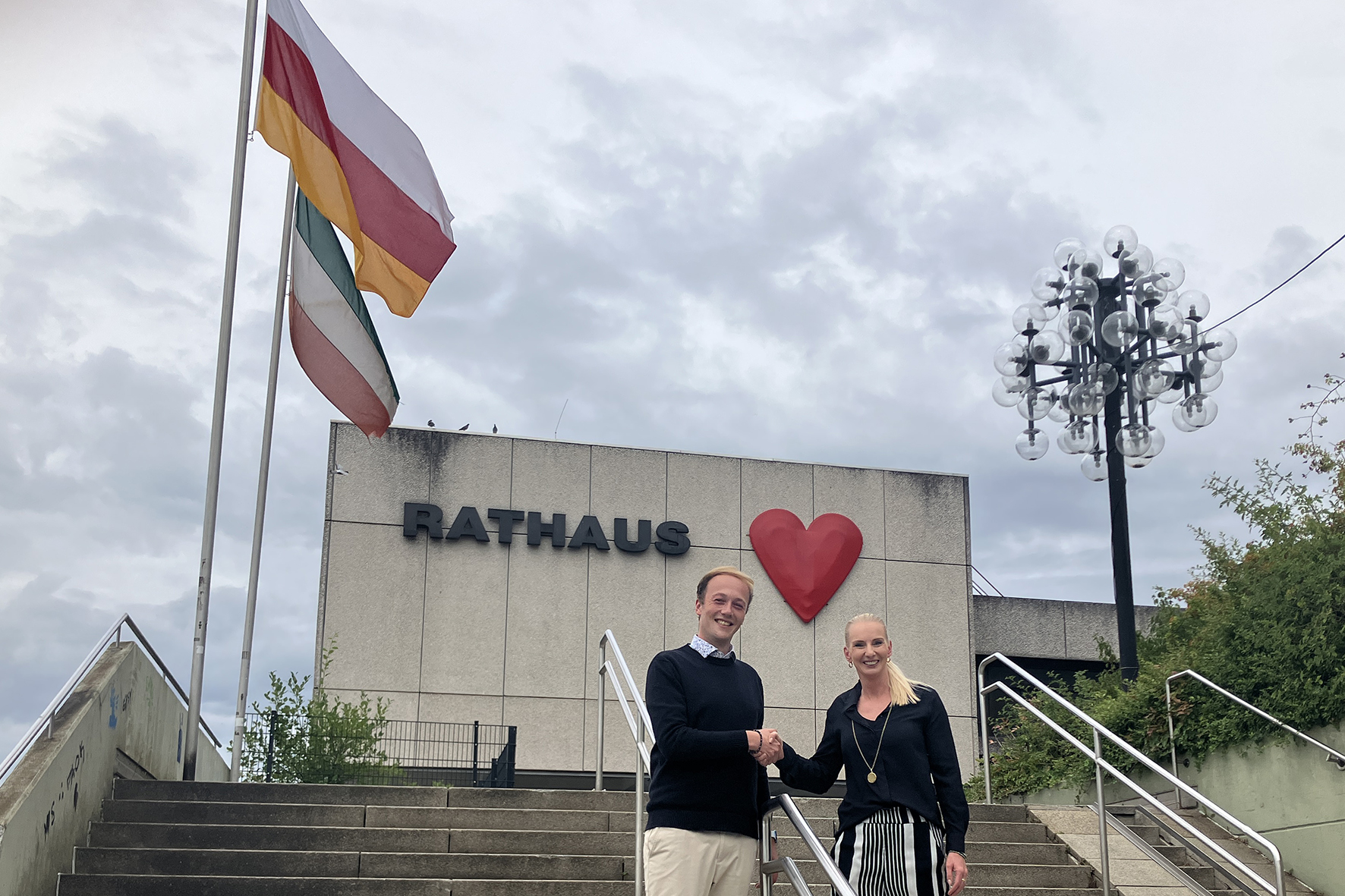 Pressesprecherin Bianca Braunschweig begrüßt Christian Hoeper als neuen stellvertretenden Pressesprecher der Stadt Iserlohn.