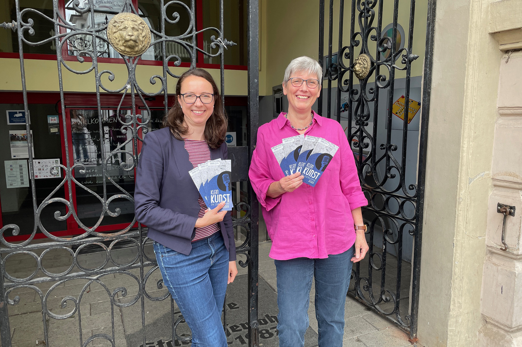 von rechts: Gudrun Völcker, Leiterin der Stadtbücherei Iserlohn, und Dr. Sandra Hertel, Leiterin der Städtischen Museen, stellen das neue Kleinkunstprogramm vor.