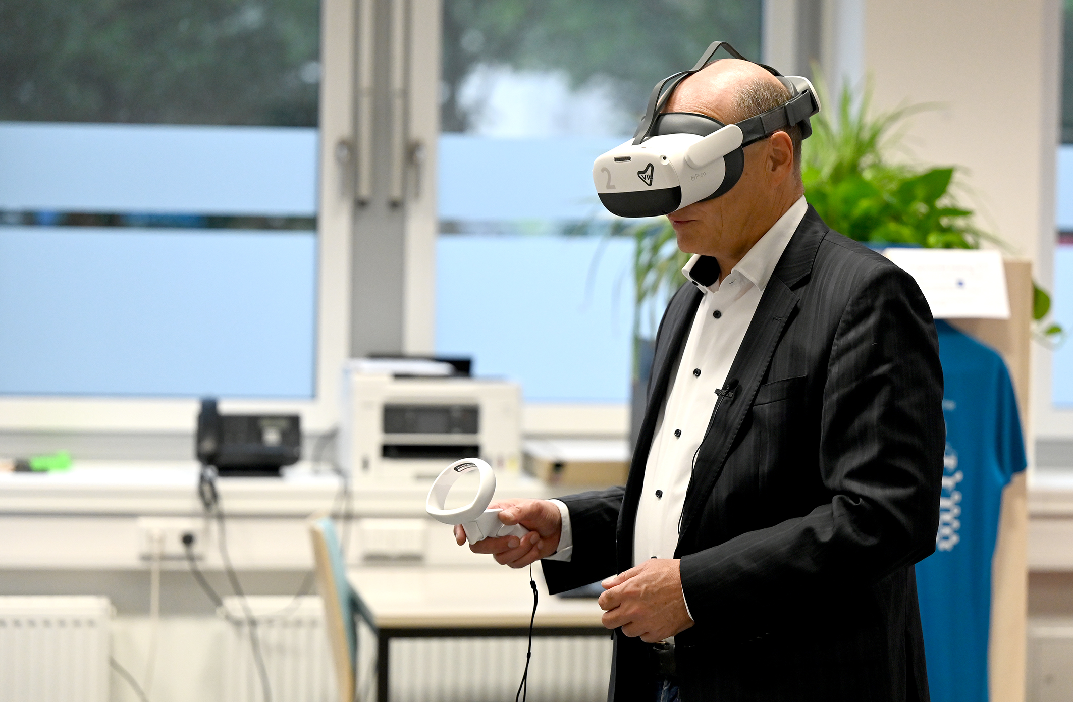 Dr. Martin Sommer, Landrat des Kreises Steinfurt, hat bereits im Vorfeld des Tages der offenen Tür eine Virtual Reality-Brille ausprobiert.