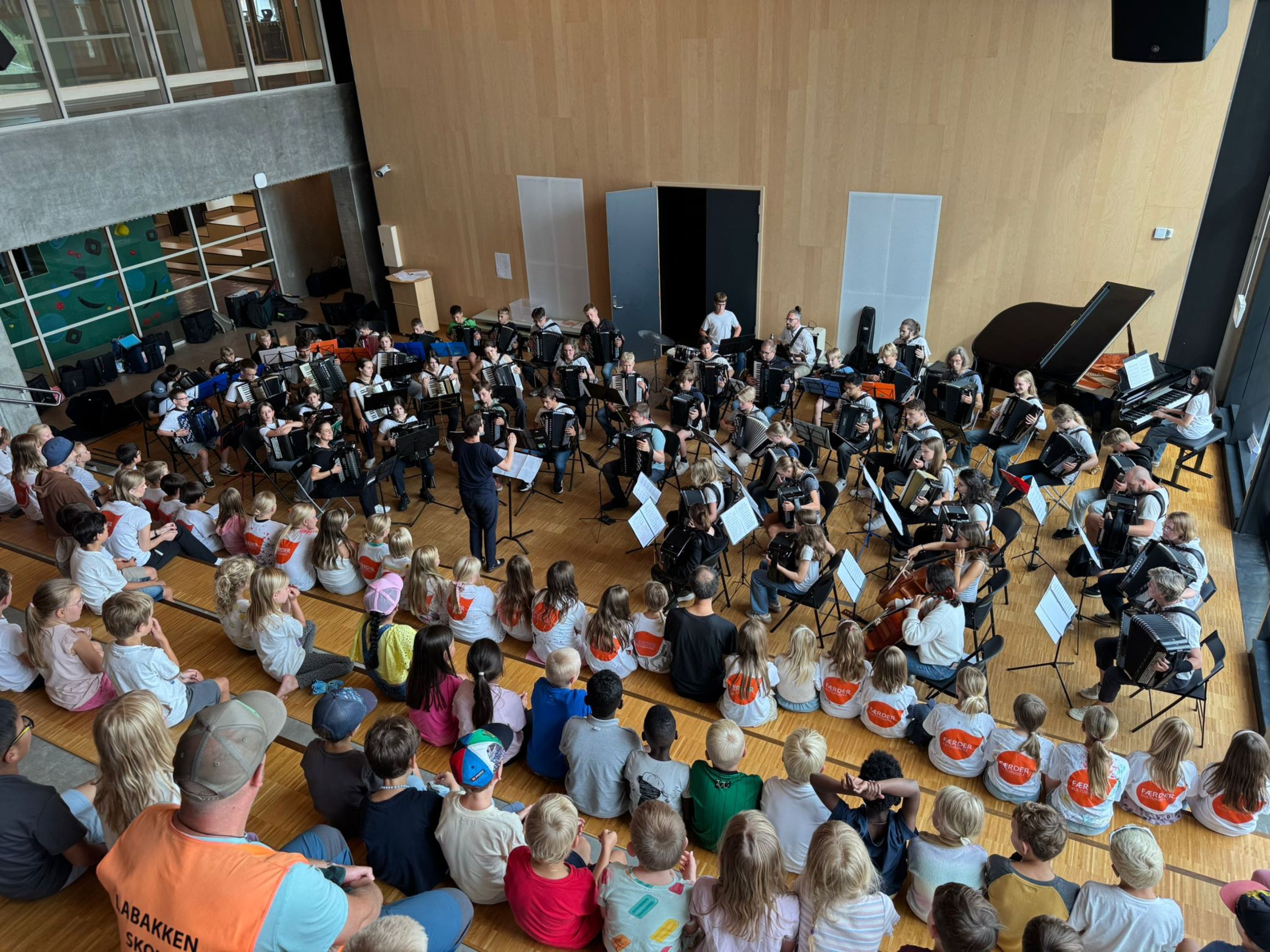 Das Jugend-Akkordeonorchester der Kreismusikschule Viersen spielt ein Konzert in der Labakken-Schule in Norwegen.