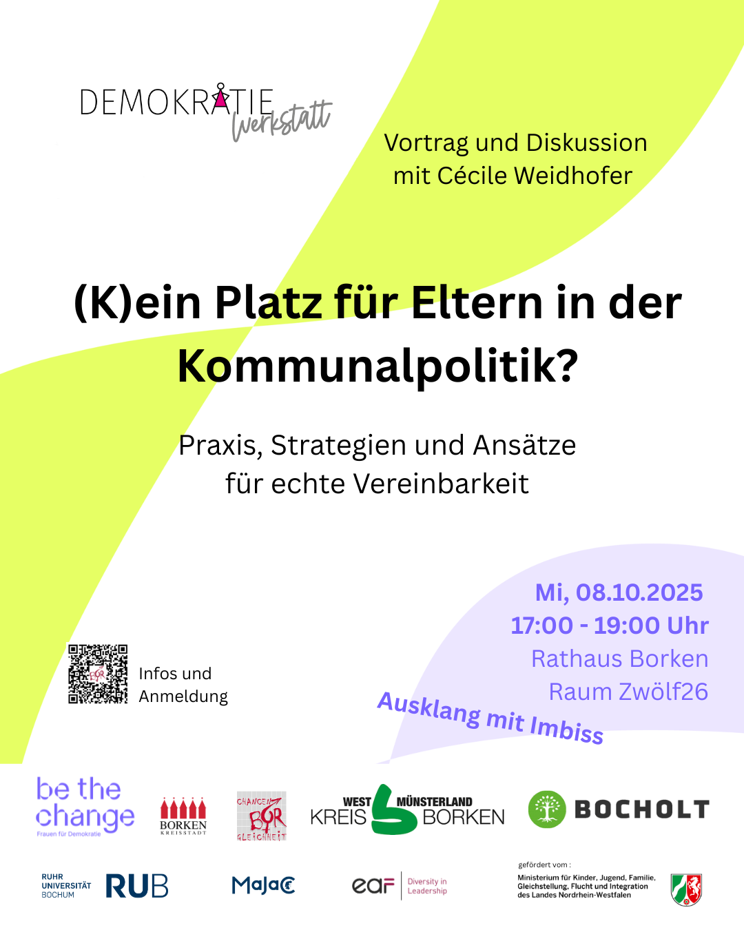 Am 8. Oktober findet eine Veranstaltung zum Thema Politische Teilhabe und Vereinbarkeit statt