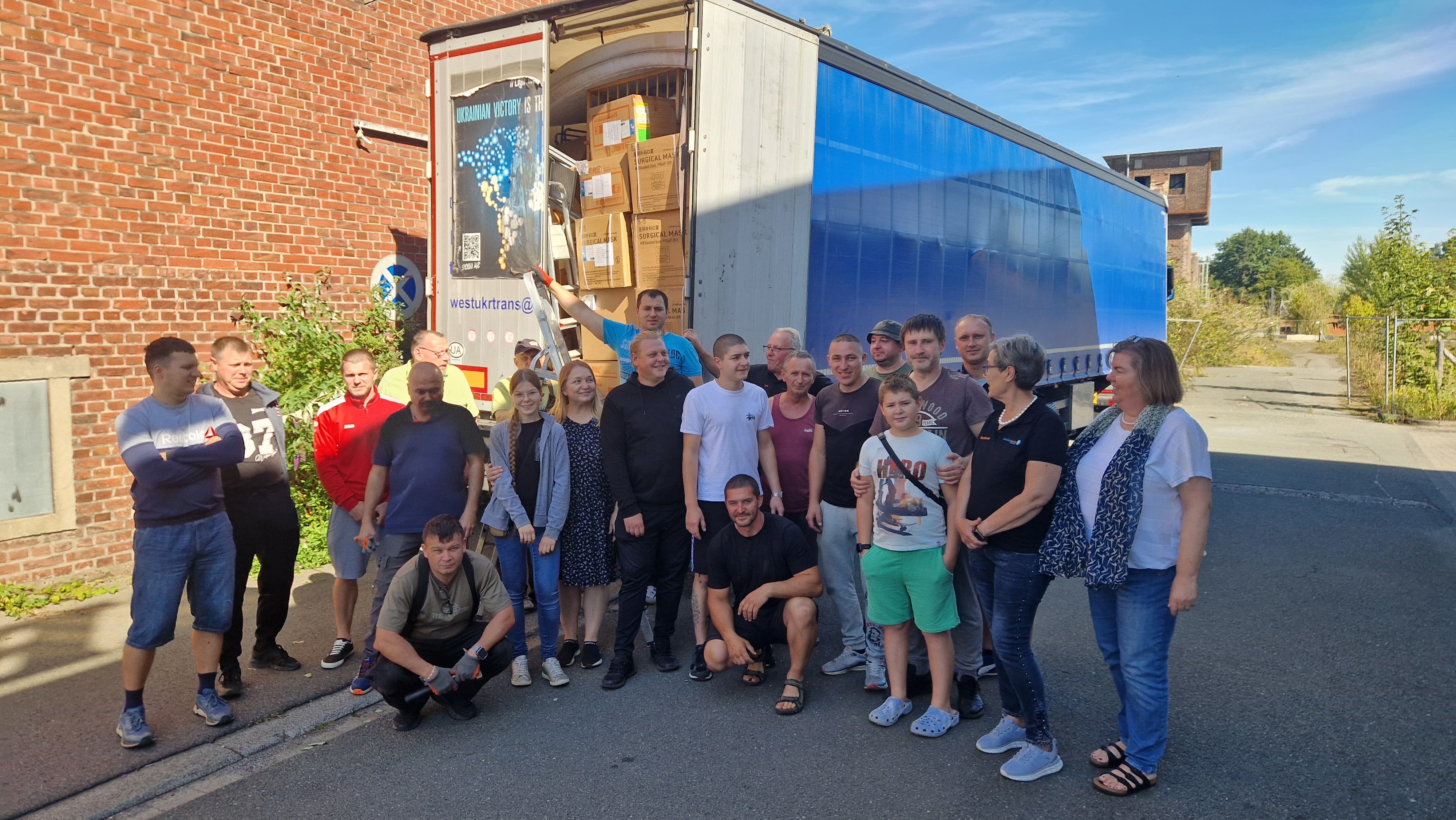 118 Feuerlöscher, 10 Generatoren, Schulmöbel, Winterkleidung, Betten, medizinische Versorgung – verpackt und verladen mit Unterstützung ukrainischer und syrischer Geflüchteter