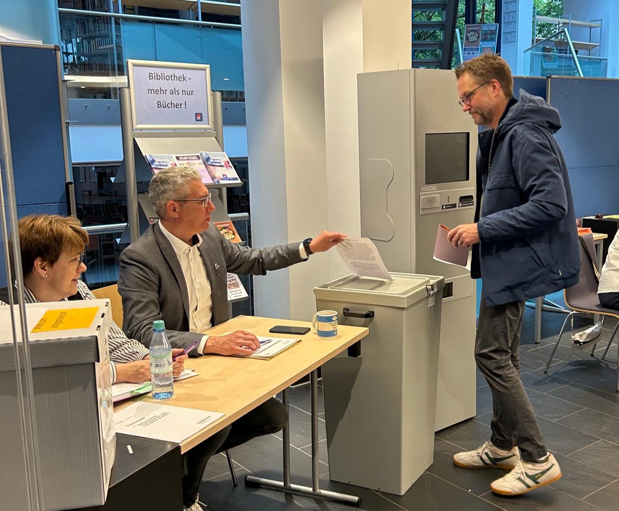 Stimmabgabe zur Kommunalwahl 2025 in der Kreisstadt Unna, hier das Wahllokal in der Bibliothek im zib.