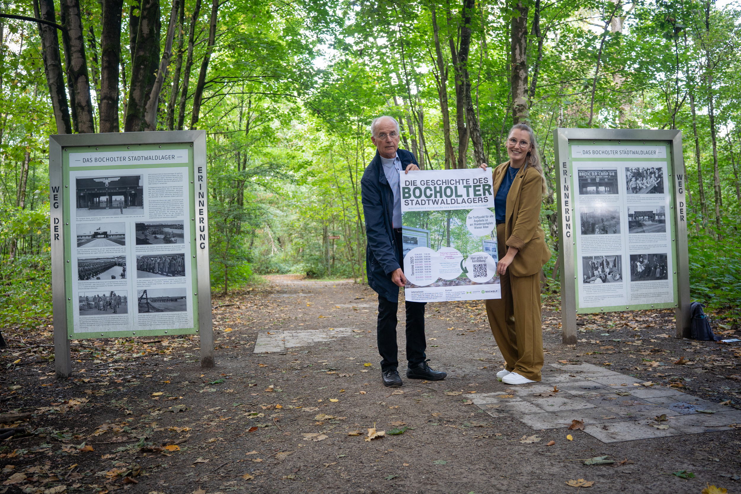 Dr. Werner Loock und Lisa Resing, Leiterin des Bocholter Stadtmuseums, organisieren die Führungen durch das ehemalige Stadtwaldlager