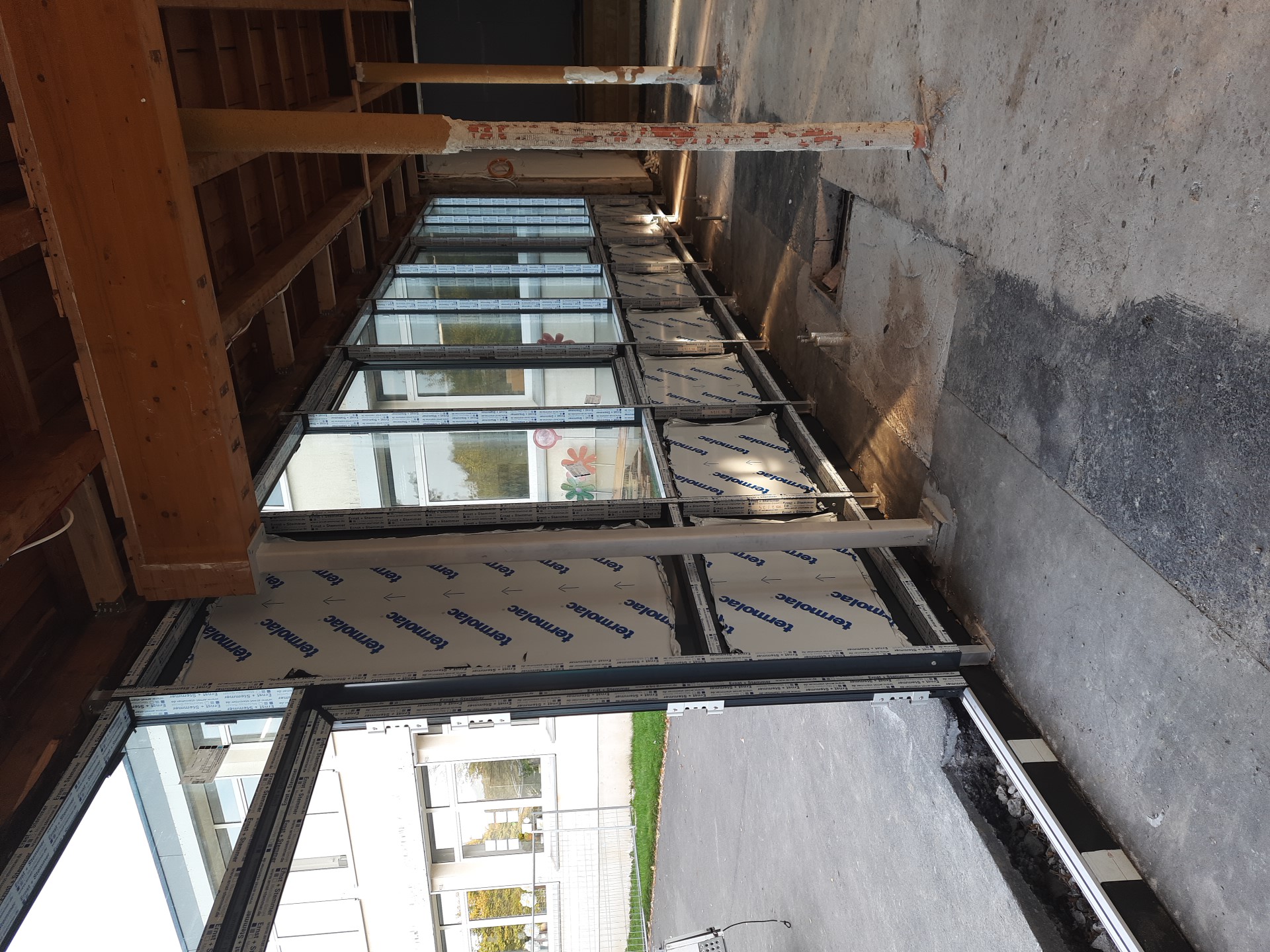 Nach der vollständigen Entkernung der fünfzig Jahre alten Pausenhalle an der Grundschule Müschede laufen die Arbeiten zum Wiederaufbau. Die Halle wird energetisch, statisch und technisch auf den heute üblichen Stand gebracht.