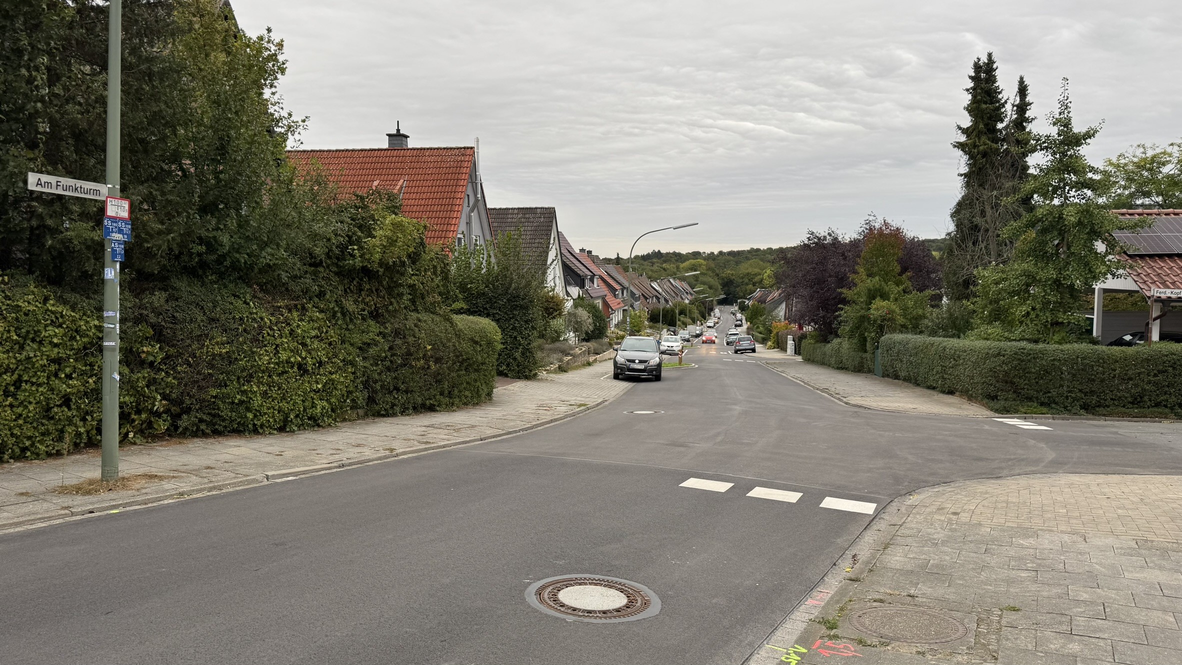 Mit der Sanierung der Straße Am Funkturm wurden nicht nur Schäden an der Fahrbahn behoben, sondern auch umfassende Maßnahmen zur Verkehrsberuhigung und zur Aufwertung des Straßenraums umgesetzt.