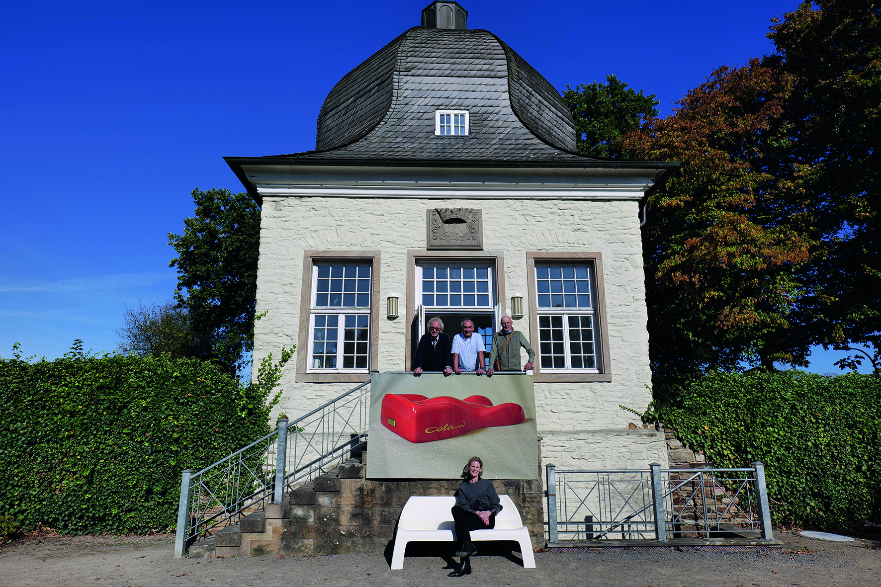 BU von links nach rechts: Aloys F. Reminghorst (Initiator), Thomas Hoeck (Sammler), Michael Reinold (Unterstützer) und Marion Freitag (Leiterin Stabstelle Kultur und Tourismus) Foto Marina Lünemann – Kreis Unna