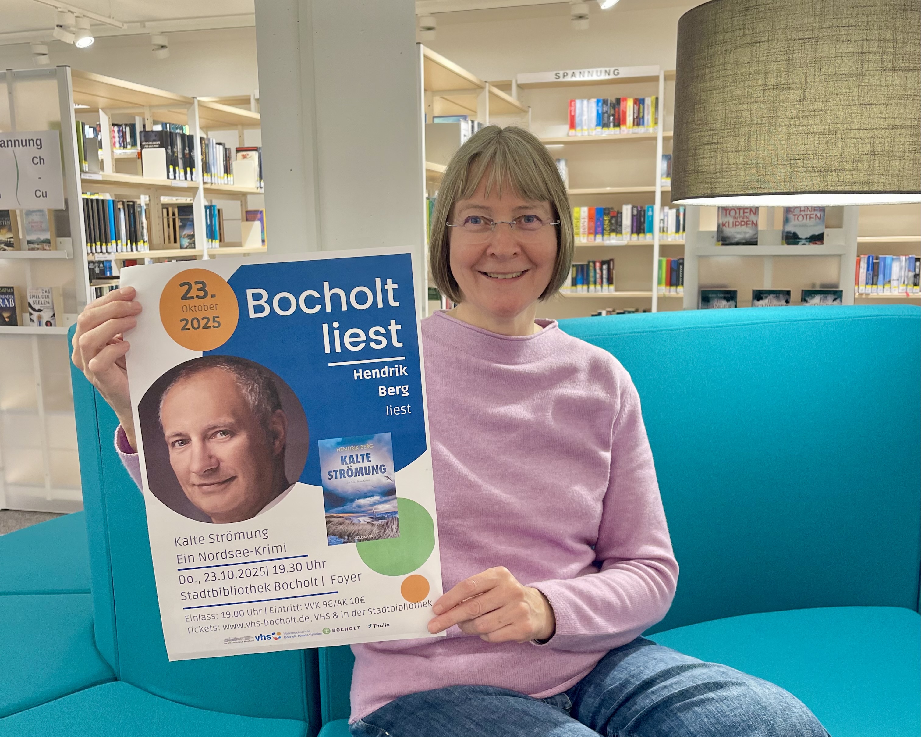 Klaudia Kroesen aus der Stadtbibliothek freut sich auf eine nordfriesische Lesung mit Hendrik Berg