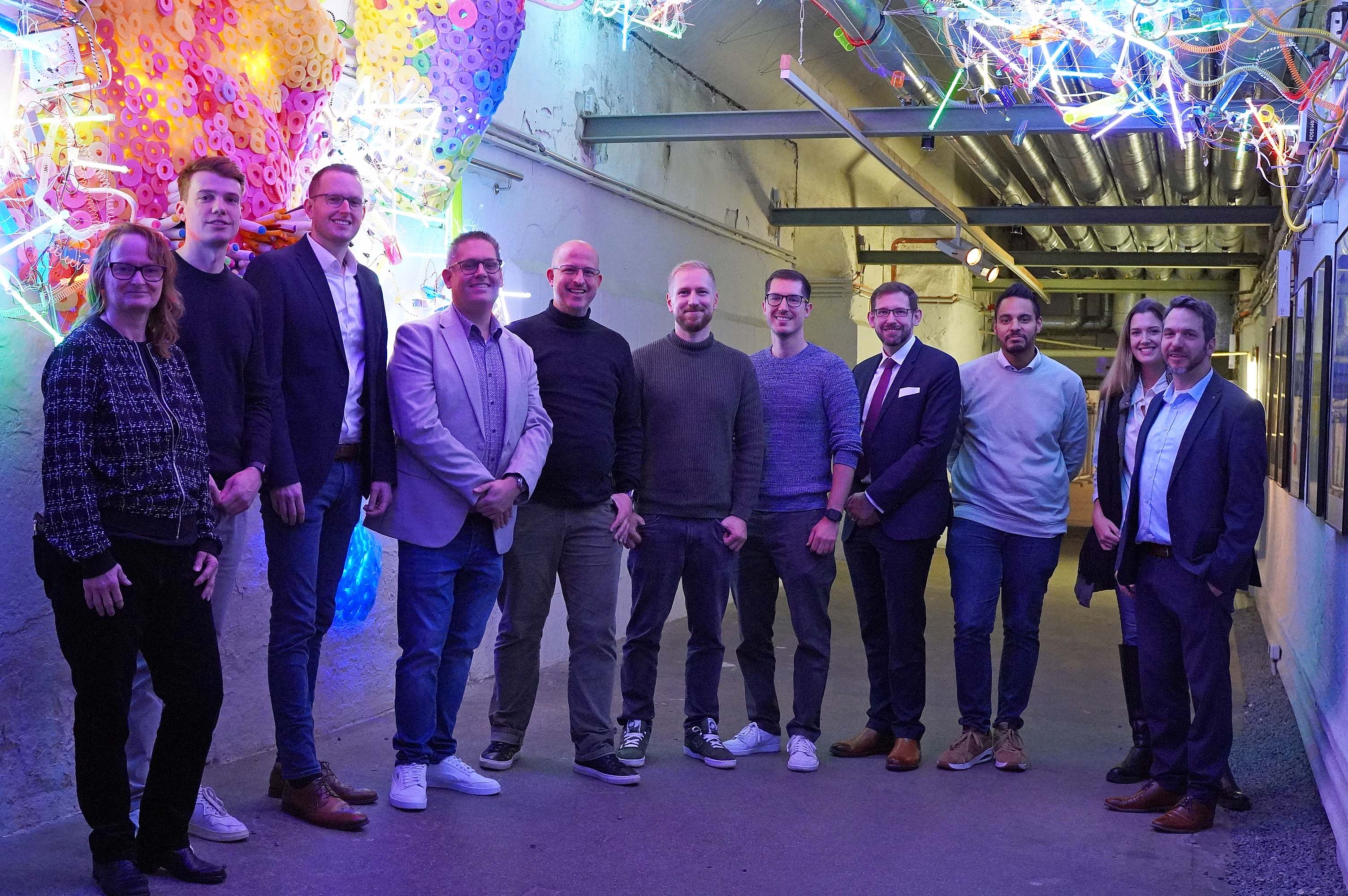 Vertreter*innen der Kommunalverwaltungen aus Unna, Rosendahl, Nettetal und Oberhausen, hier im Zentrum für Internationale Lichtkunst, gaben gemeinsam den Startschuss für den KI-Hub NRW.