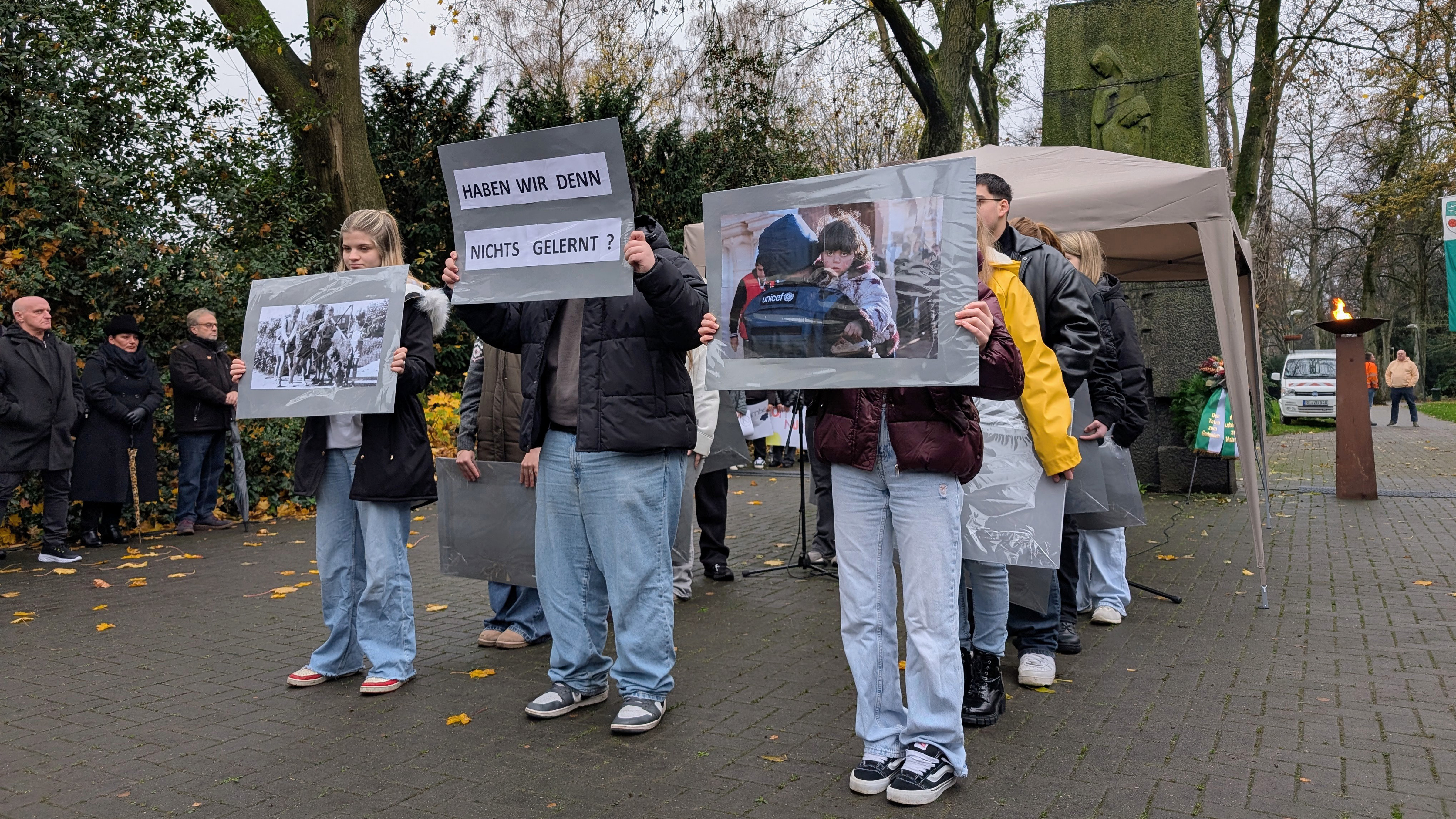 Ob wir aus den Weltkriegen nicht gelernt hätten, fragten mahnend die Schülerinnen und Schüler der Martin-Luther-Schule mit Blick auf die derzeitige Weltlage. (Foto: Stadt Herten_Jana Putze)