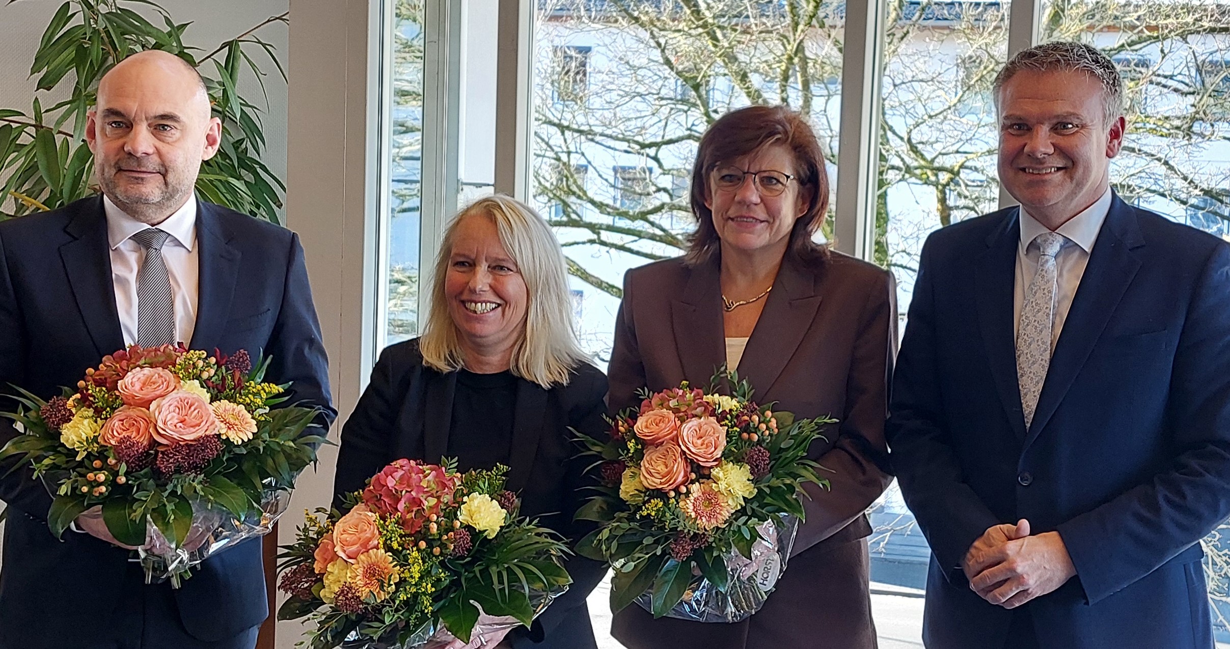 Landrat Thomas Grosche (r.) mit seinen Stellvertretungen (v.l.n.r.): Sascha Walenta, Nathalie Evers-Stumpf und Hiltrud Schmidt. // Foto: Pressestelle HSK