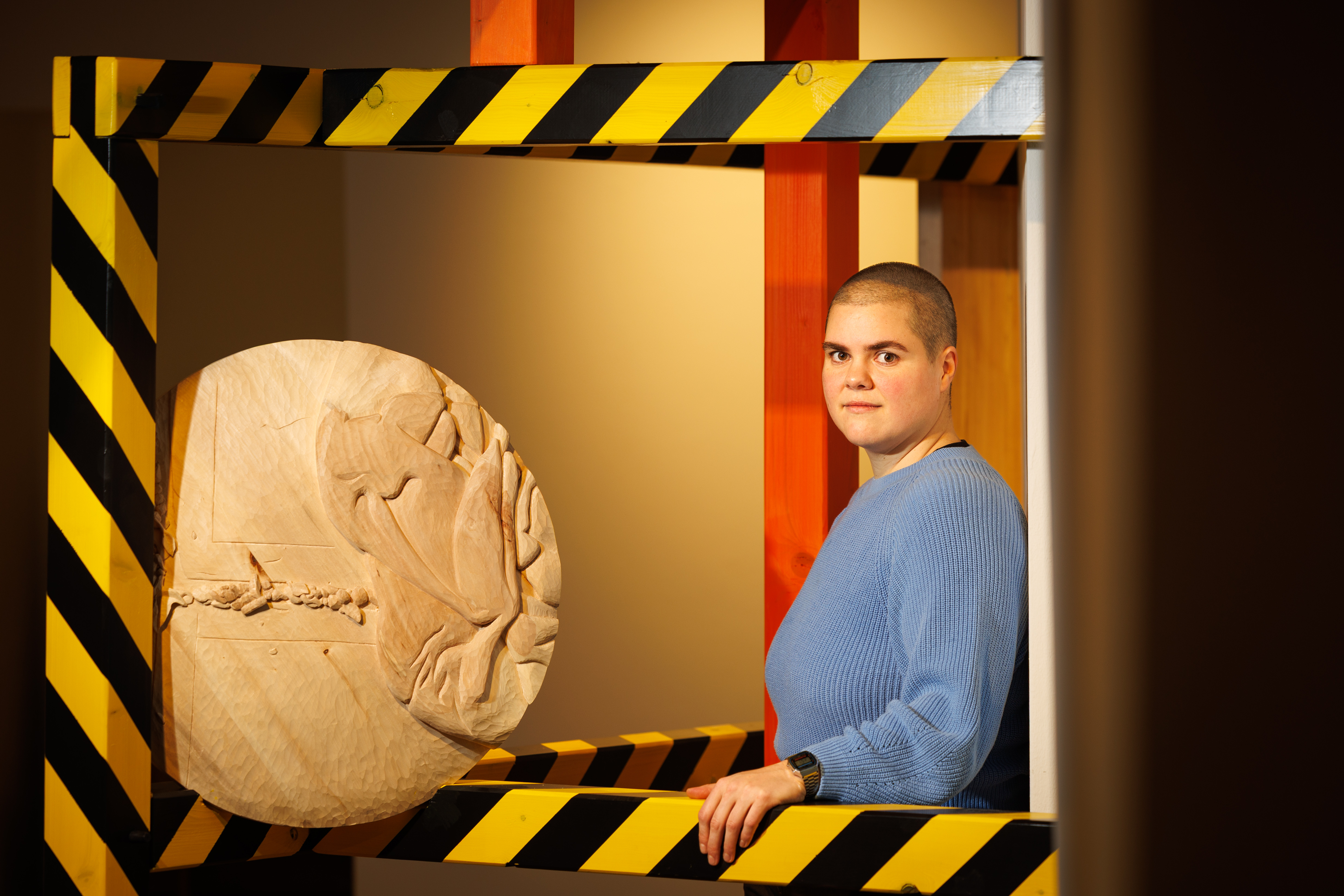 Cornelia Herfurtner in ihrer Installation „Das Periphere Sehen“, Kunsthalle Osnabrück 2025. Courtesy die Künstlerin. Foto: Friso Gentsch