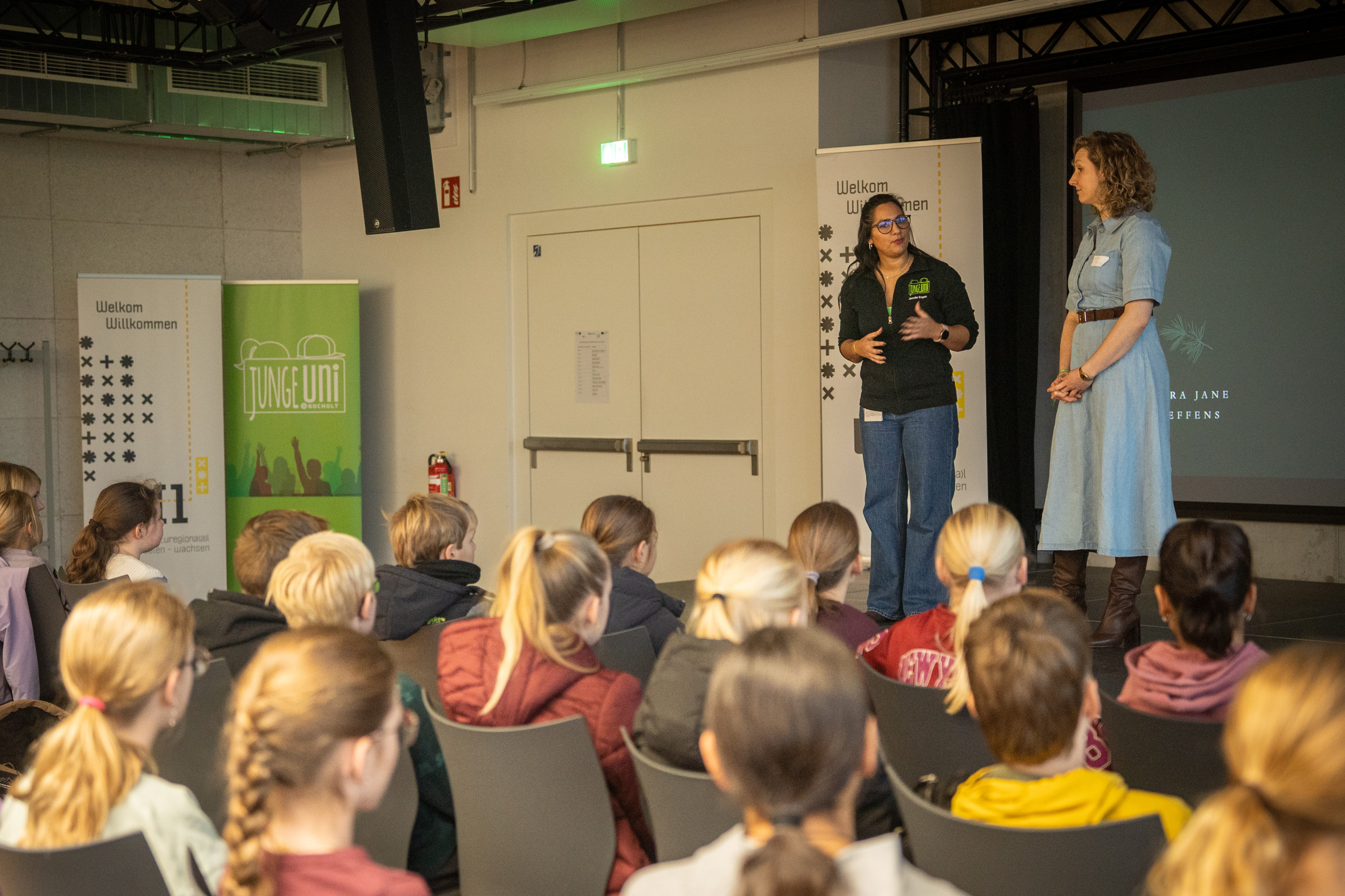 Jennifer Engels, Leiterin der Jungen Uni, begrüßte die Teilnehmerinnen und Teilnehmer.