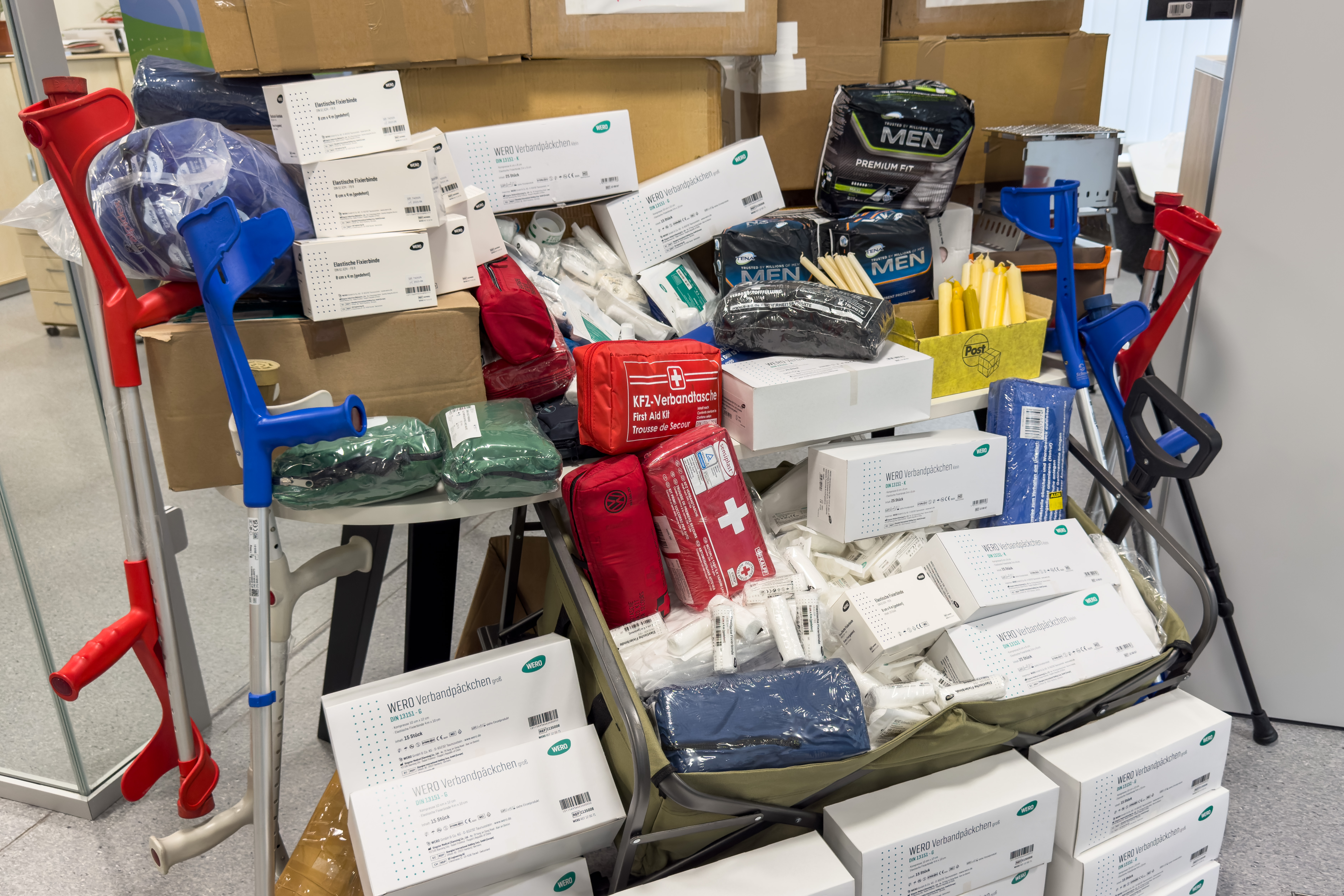Da kommt einiges zusammen. Diese Materialien sollen den Menschen in der Ukraine helfen.
