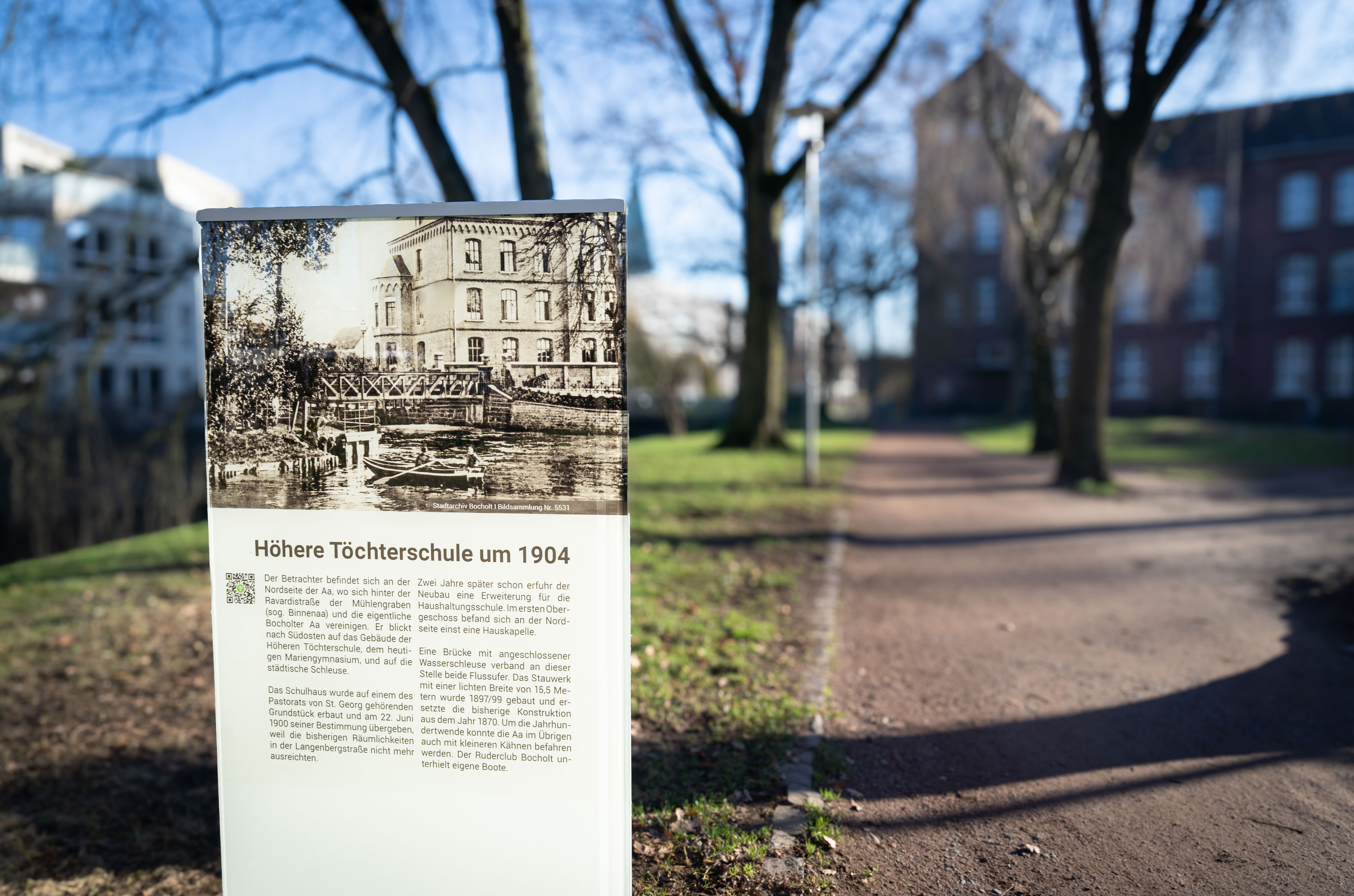 Eine der neuen Bildtafeln befindet sich am Mariengymnasium mit Blick auf die alte Schleusenanlage.