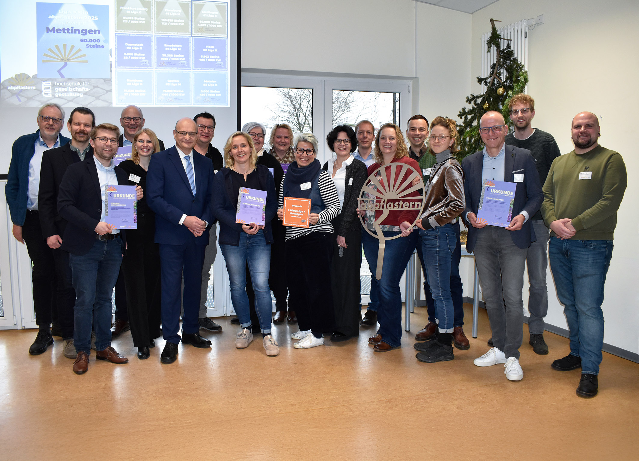 Bei der Feierstunde wurden acht Kommunen aus dem Kreis Steinfurt für ihre Platzierungen beim abpflastern-Wettbewerb 2025 ausgezeichnet.