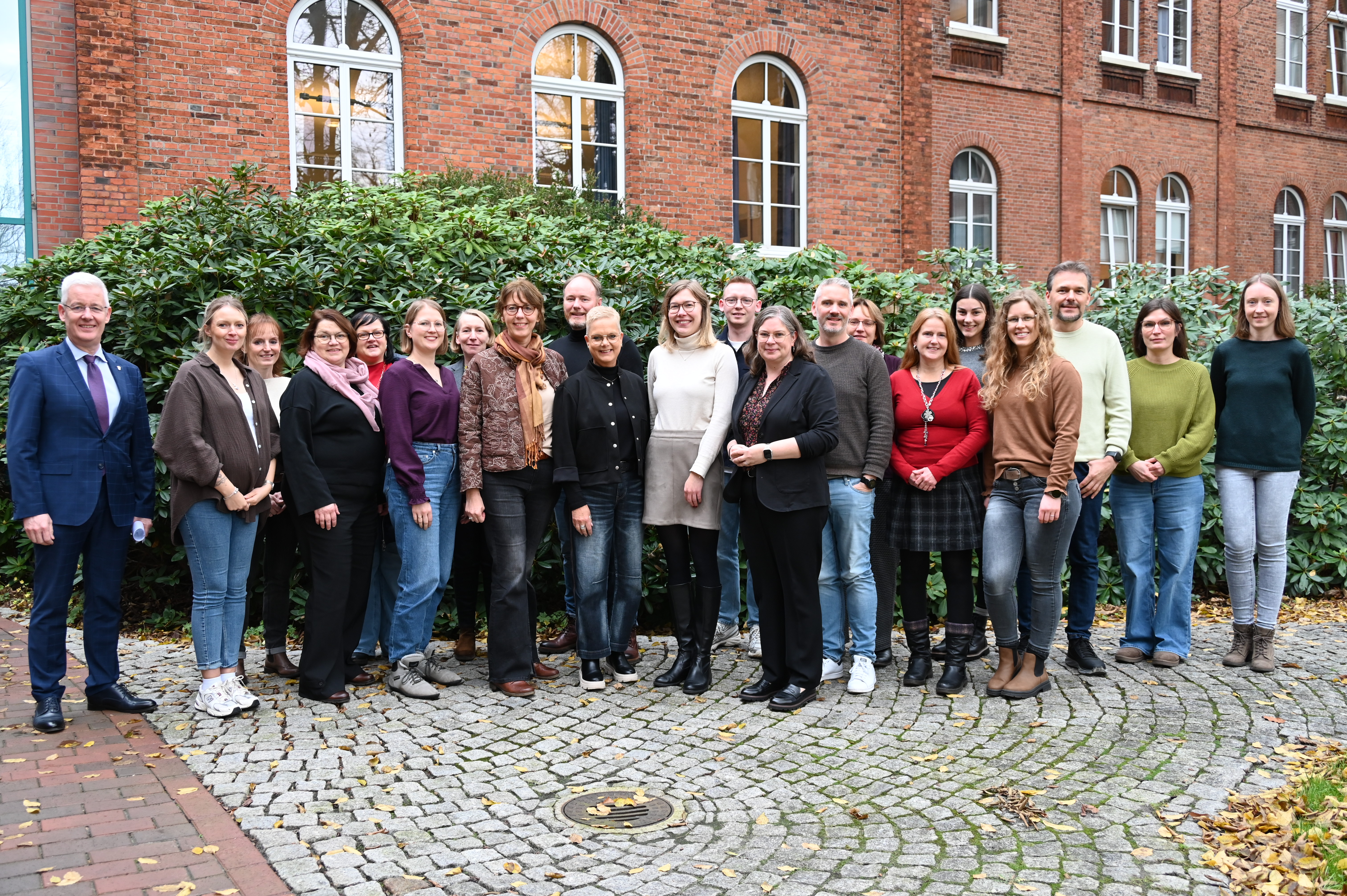 Gruppenbild zur Jubiläumssitzung: Tourismusexperten aus den Städten und Gemeinden im Landkreis Leer mit Landrat Matthias Groote, Vorsitzender der Gesellschafterversammlung