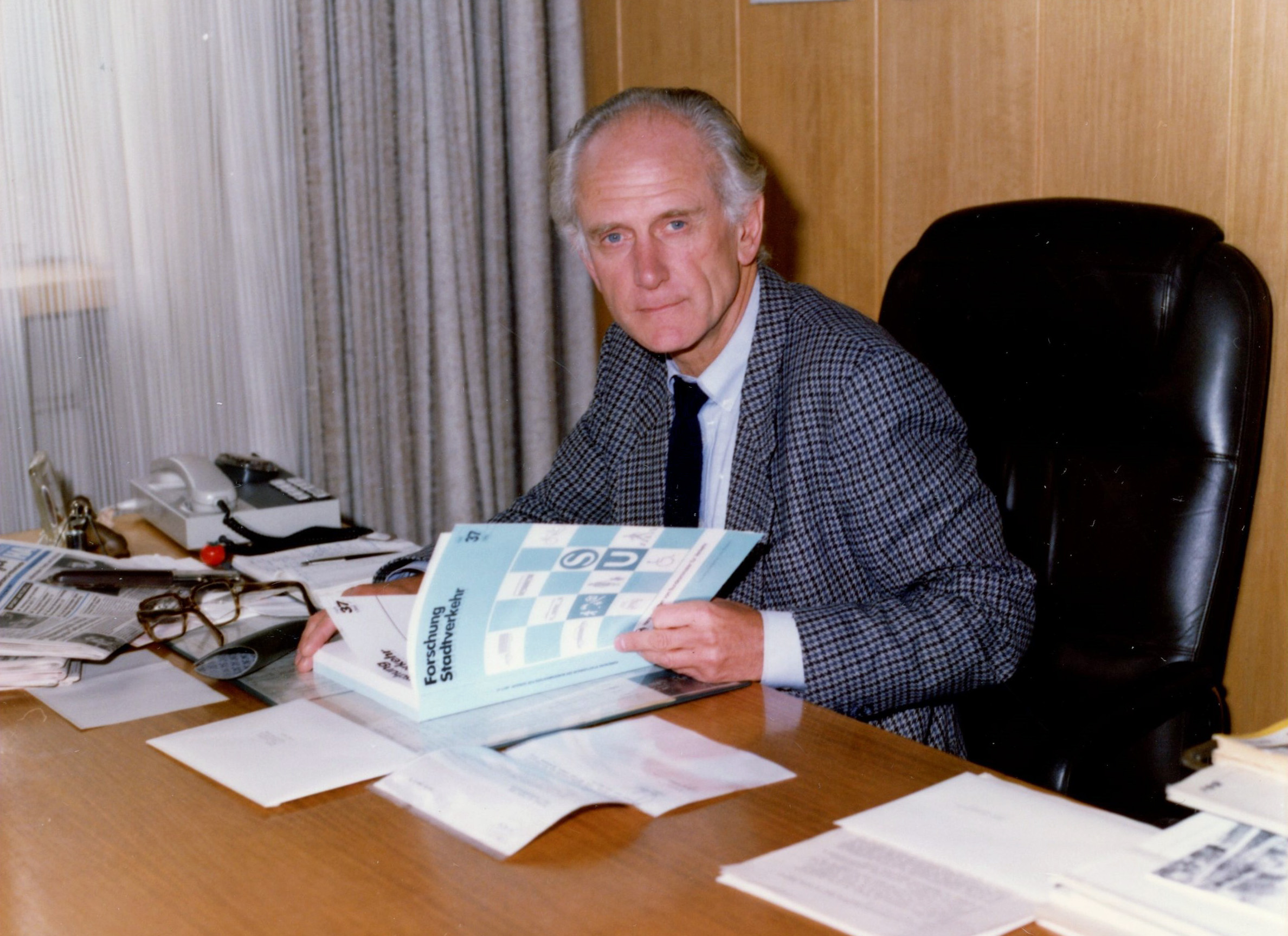 Der Erste Beigeordnete Peter Schickert an seinem Schreibtisch im Rathaus im August 1988.