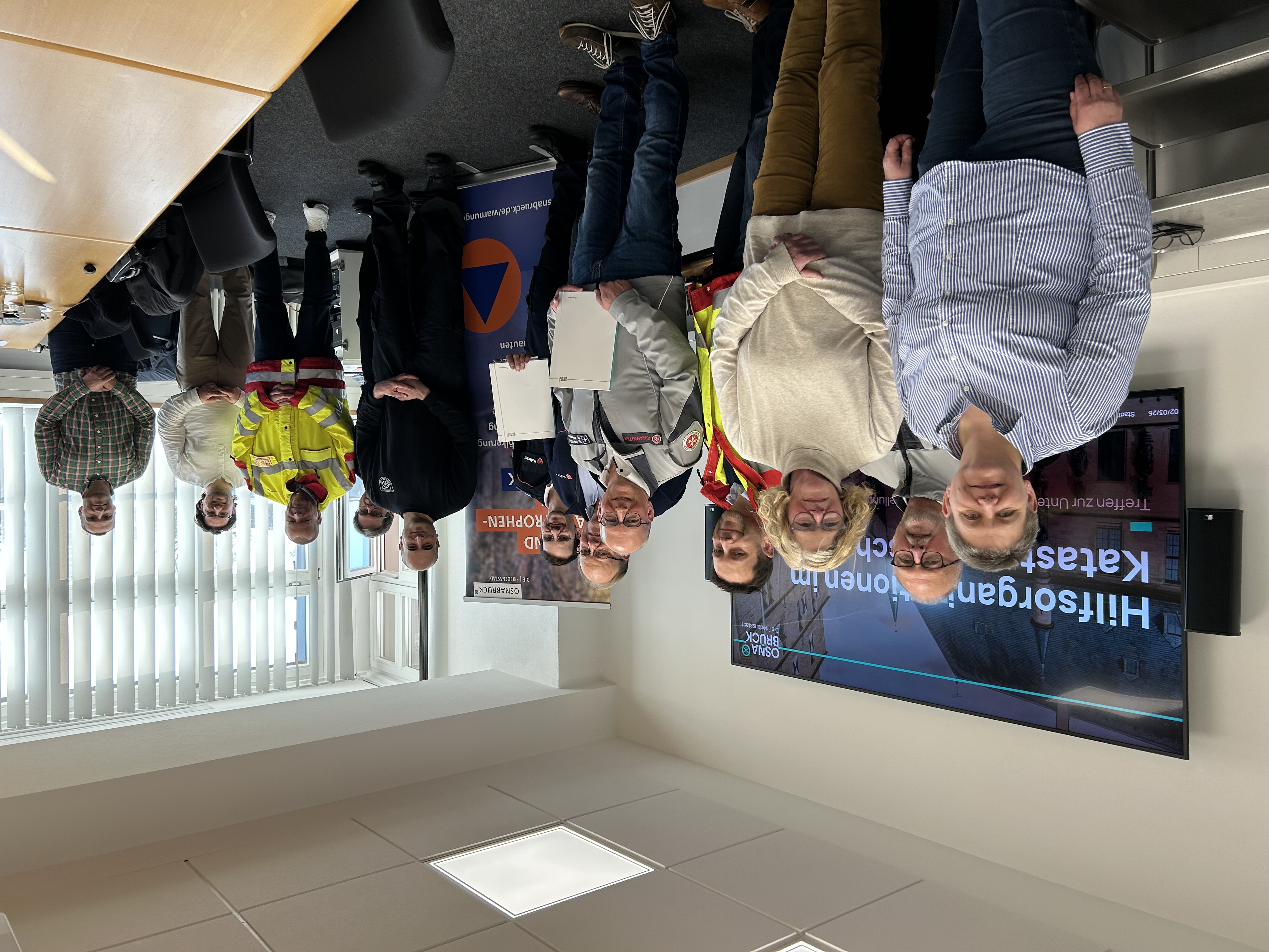 Zusammenarbeit für den Katastrophenschutz in Osnabrück: (v.l.) Heike Pape (Vorstand 4), Dieter Meyer (JUH), Marita Würth (JUH), Lars Winter (ASB), Wilfried Barysch (JUH), Ludwig Unnerstall (MHD), Julian Leuders (MHD), Sven Krenzien (Teamleiter Katastrophenschutz), Dietrich Bettenbrock (Amtsleiter Feuerwehr), Thomas Heine (ASB), Rafael Schmidt (Abteilungsleiter Verwaltung und Katastrophenschutz), Bastian Vietz (Team Katastrophenschutz).