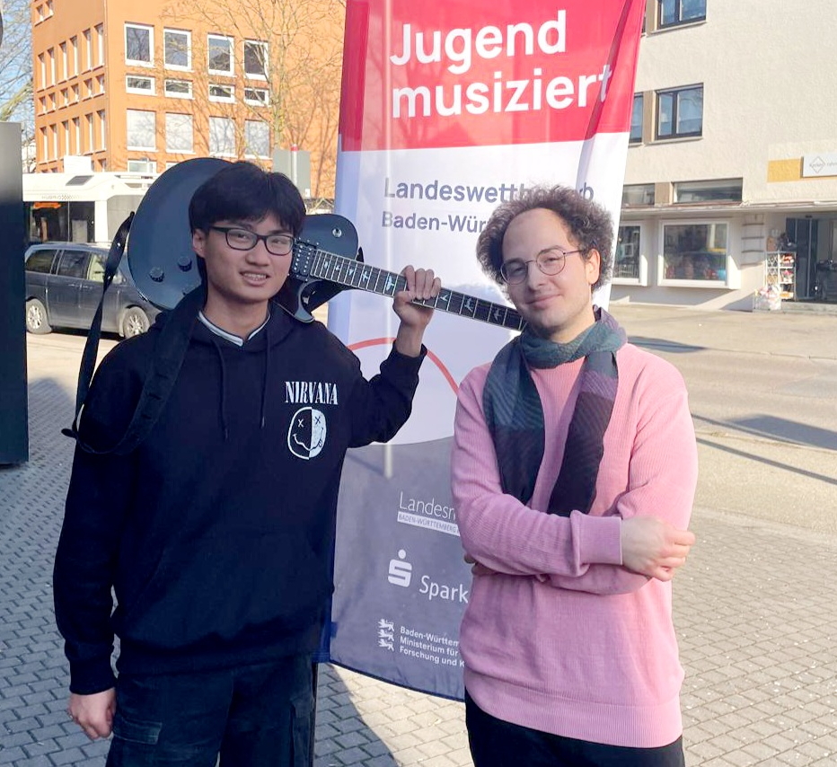 Teeradanai Audta holte einen zweiten Landespreis an der Gitarre. Begleitet hat ihn sein Lehrer Dimitry Nikifotov (rechts). Foto: Musikschule Wertheim.