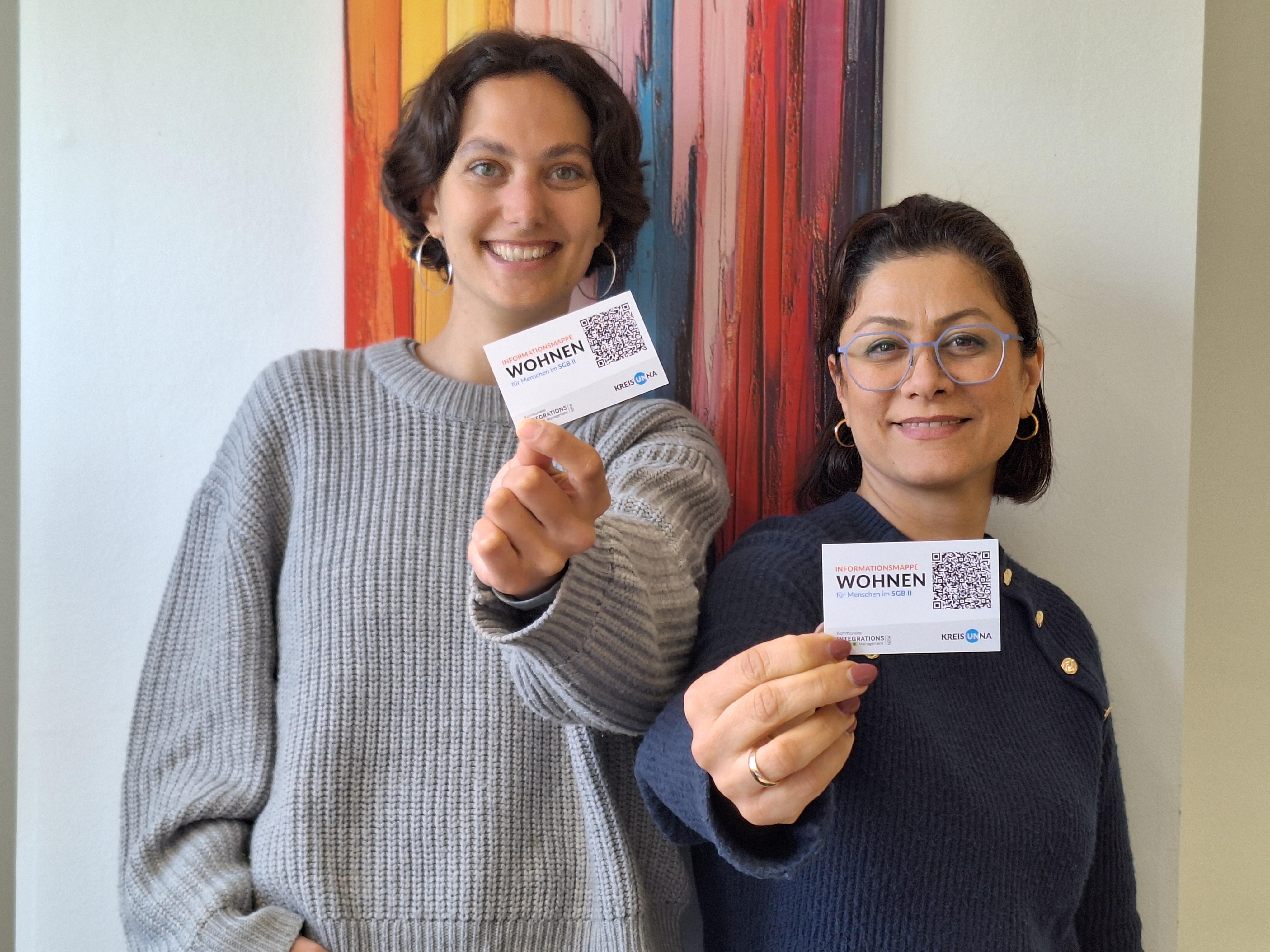 KIM Koordinatorin Frida Bosch (links) und Elham Pourmahmood, KIM Case Managerin, haben die digitale Infomappe zum Thema Wohnen erstellt. Foto Kreis Unna