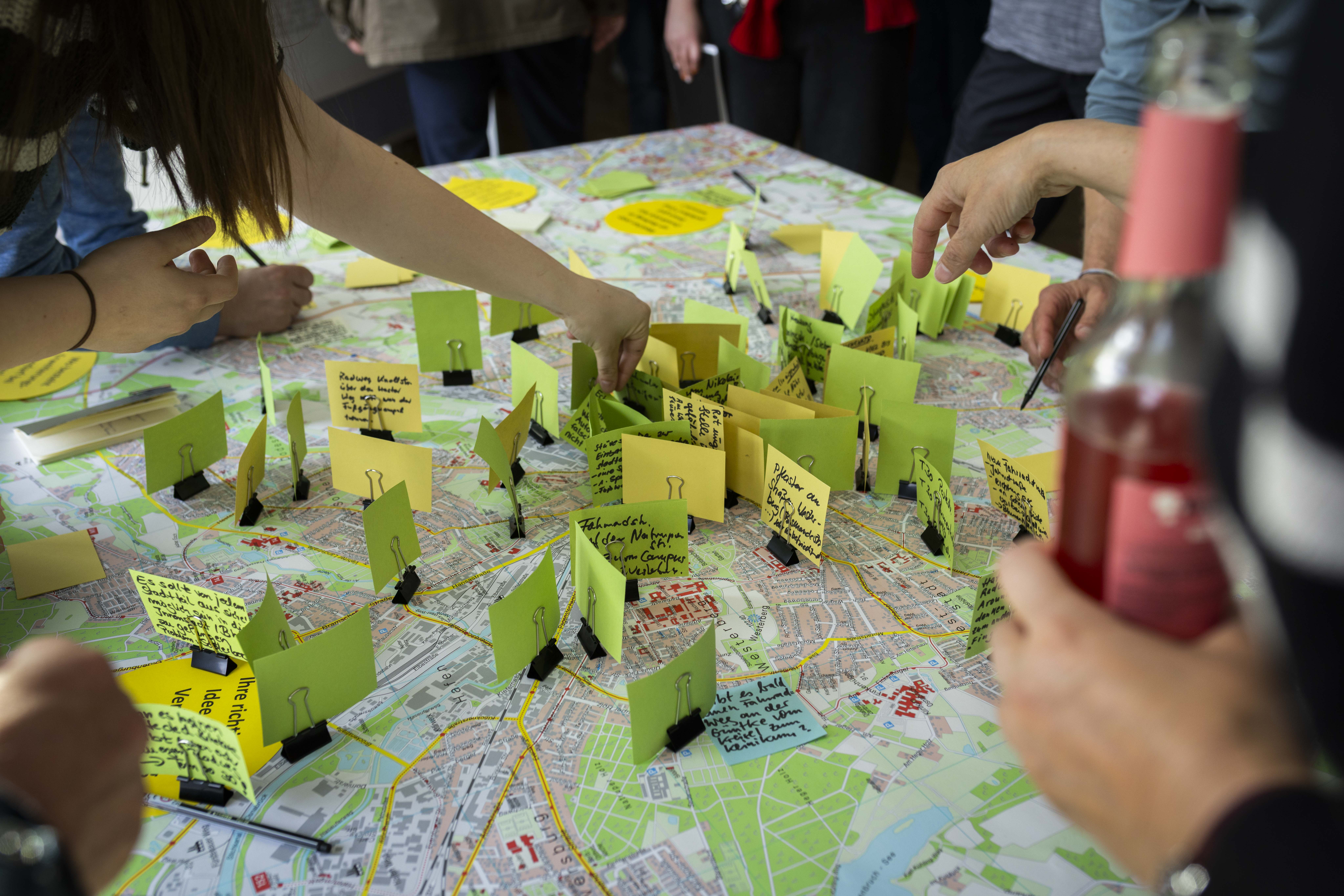 Gut angenommen wurde beim ersten Osnabrücker Fahrrad-Dialog der große Stadtplan, auf dem konkrete Gefahrenstellen, Verbesserungsvorschläge und Anregungen vermerkt werden konnten.