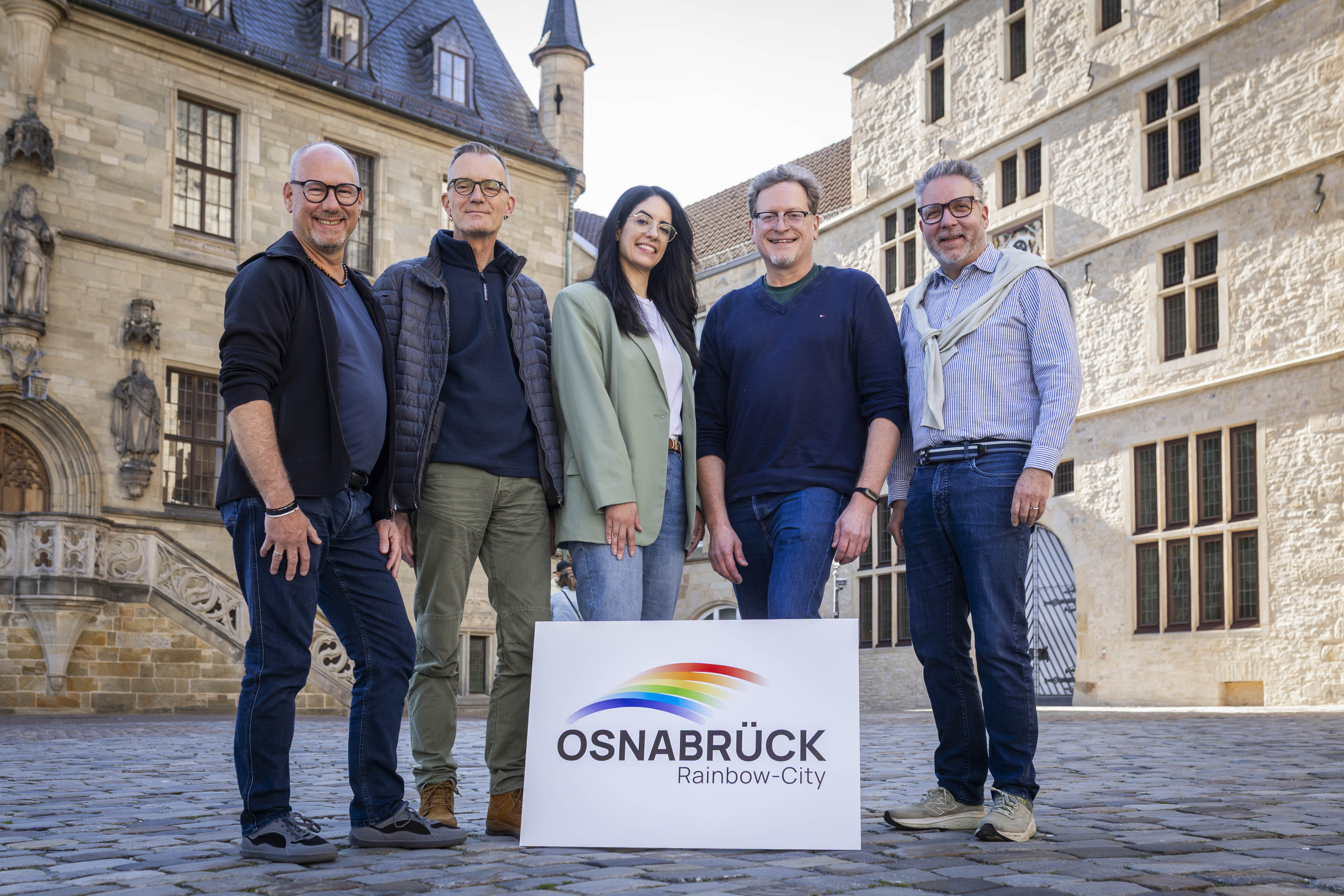 Die Mitglieder des Queer-Beirates freuen sich über den Beitritt der Stadt Osnabrück zum internationalen Rainbow Cities Network: Michael Hirsch (links), Sven Christian Finke-Ennen, Heba Najdi, Martin Pohlmann, Jörn Litsche-Niekamp.