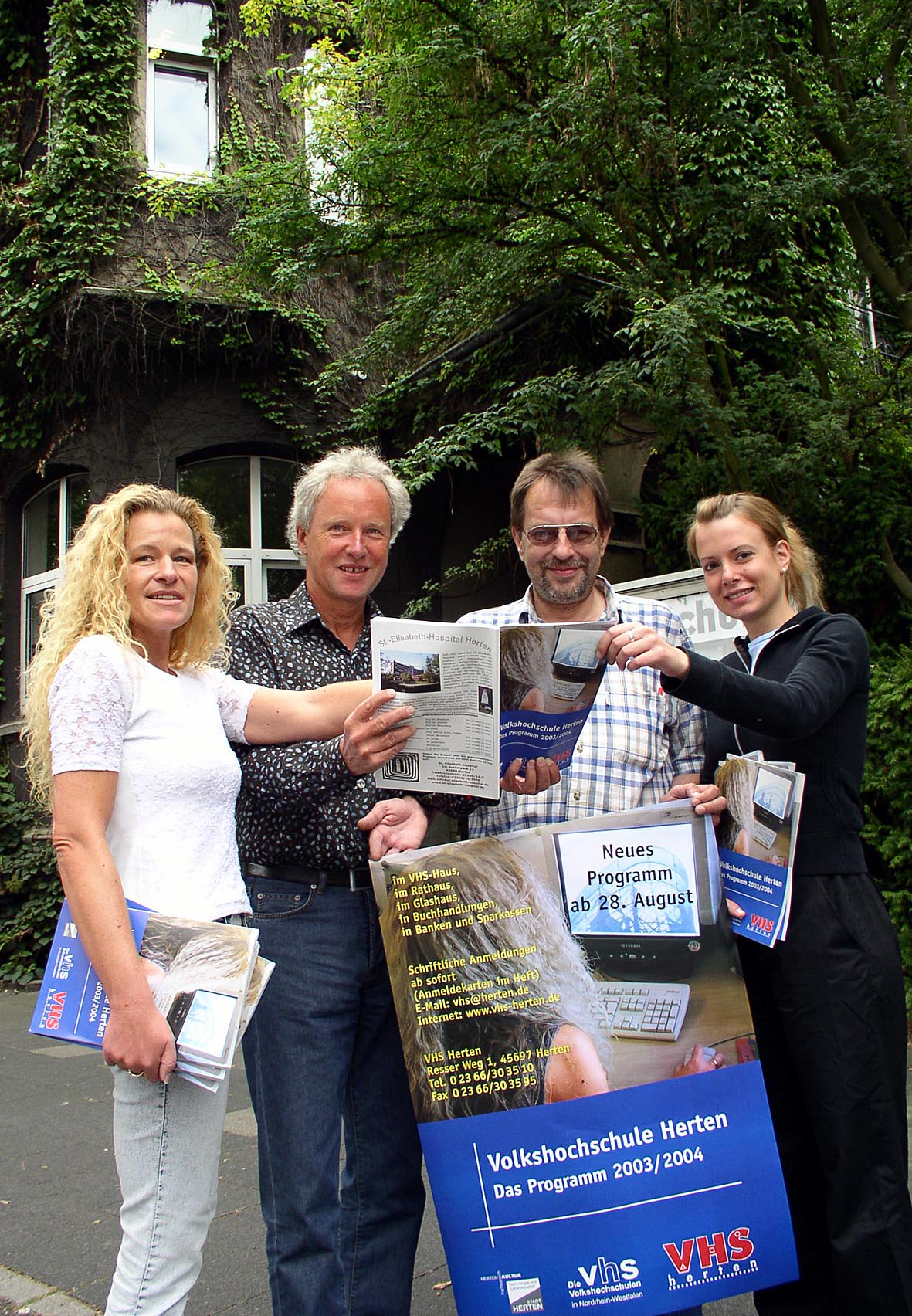 Das VHS-Programm 2003/2004 stellten am Mittwoch Astrid Kempf, Frank Senner, Manfred Nousch und Katrin Wirths vor (v.l.).