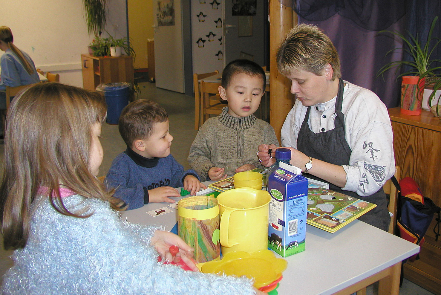 Teilnehmerin beim Programm "Arbeit für Langzeitarbeitslose" in einer städtischen Kindertageseinrichtung