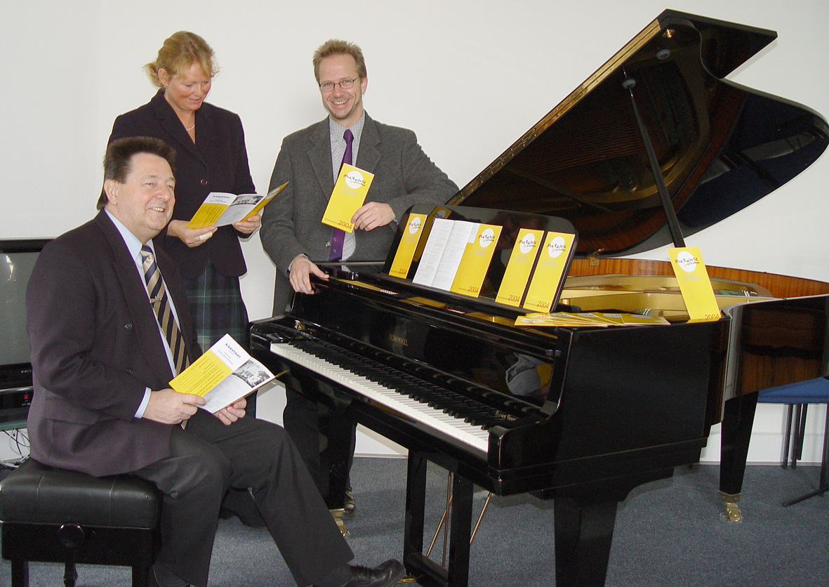 Bürgermeister und Kulturdezernent Klaus Müller, Musikschulleiter Paul Breidenstein und die Vorsitzende des Freundeskreises der Musikschule Iserlohn Tone Johansen-Junius stellen das Programm der Musikschule für 2004 vor