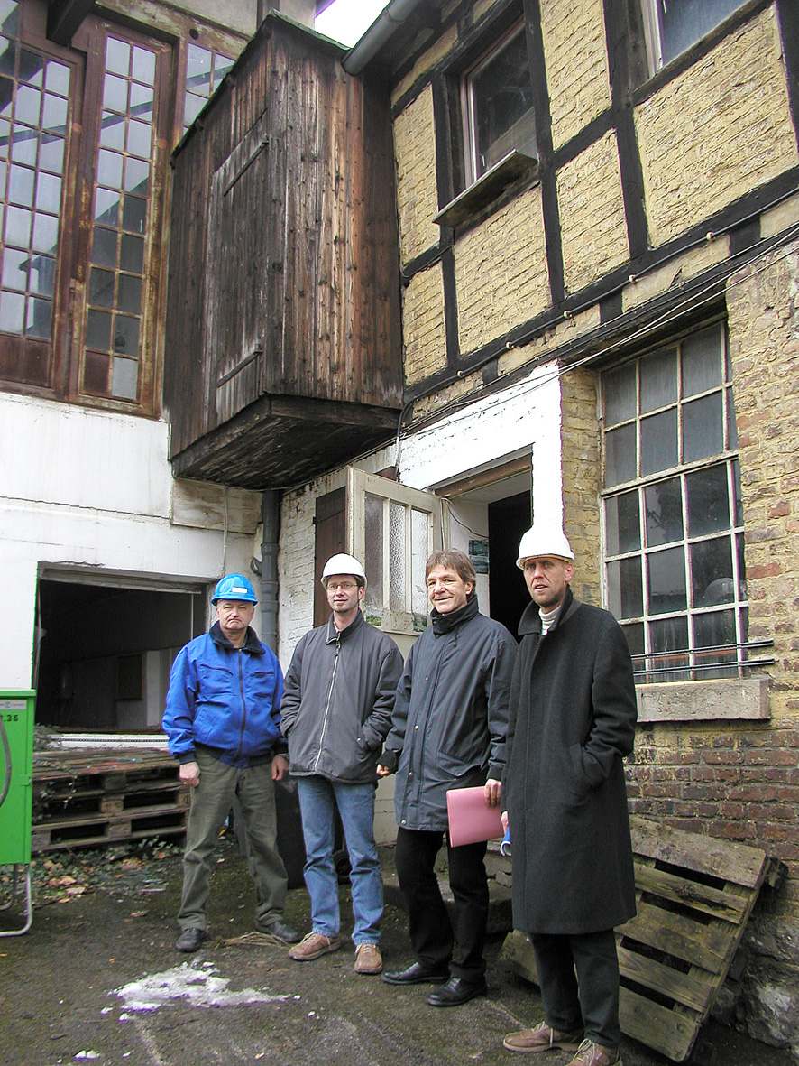 Erläuterten beim Pressetermin das Vorgehen bei den Sanierungsarbeiten (v. li.): Wilhelm Tenk, Fa. Müssmann Umweltschutz GmbH, Bauleiter Dipl.-Ing. Thorsten Wattenberg, Kommunales Immobilienmanagement der Stadt, Projektleiter Dipl.-Ing. Michael Rüther von der Abteilung Natur und Umwelt der Stadt und der Gutachter Diplom-Geologe Werner Gröblinghoff von der BRG Beratungsgesellschaft