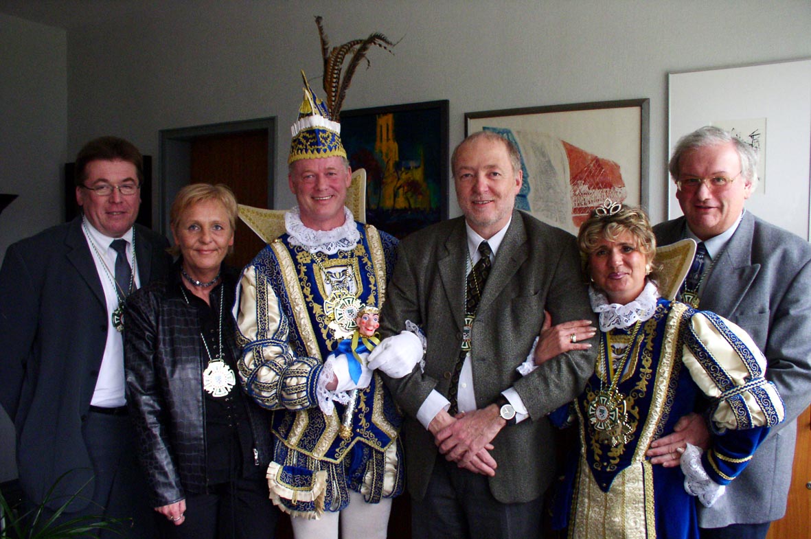 Mit Orden auf die närrischen Tage vorbereitet sind Bürgermeister Klaus Bechtel (3.v.l.), seine Stellvertreter und auch die offiziellen Vertreter der Hertener Narren.