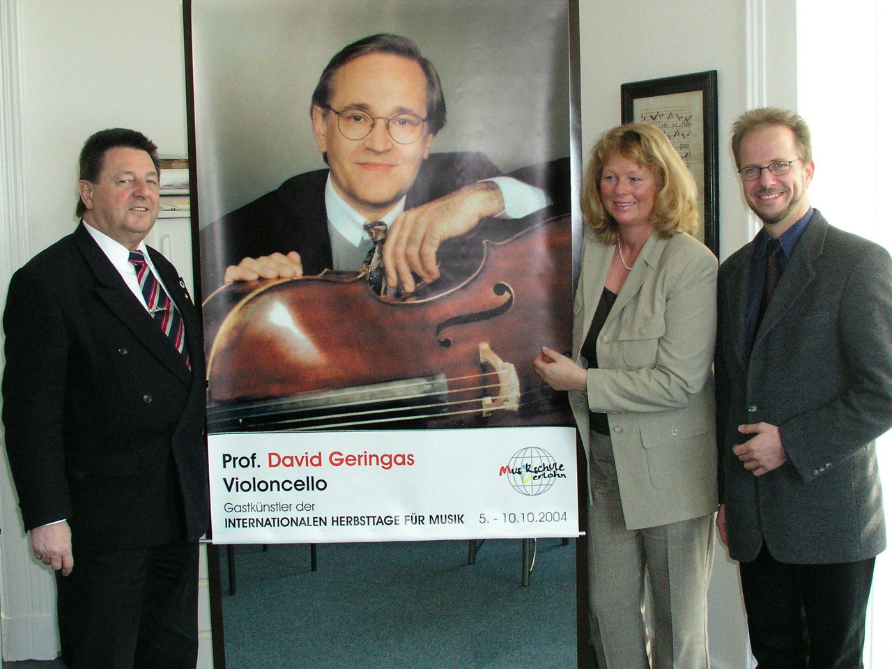 Bürgermeister und Kulturdezernent Klaus Müller, Freundeskreis-Vorsitzende Tone Johansen-Junius und Musikschulleiter Paul Breidenstein bei der Vorstellung der Internationalen Herbsttage für Musik 2004
