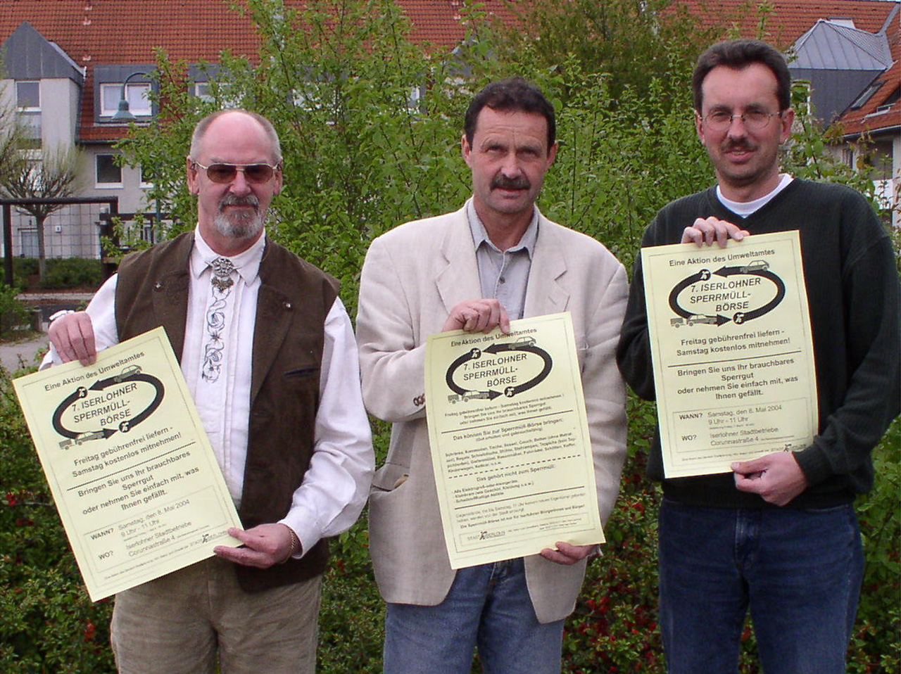 Jürgen Fiedler, Herbert Goldmann und Dirk Lachmuth (v. li.) von der Abteilung Natur und Umwelt präsentieren das Plakat der 7. Sperrmüllbörse