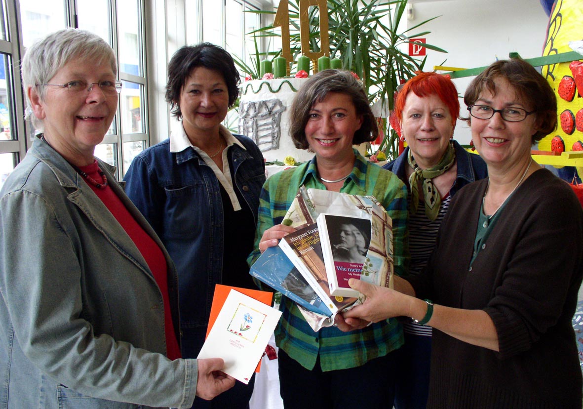 Das Frauennetzwerk überreichte Stadtbibliotheks-Leiterin Cornelia Berg ein Büchergeschenk zum Glashaus-Geburtstag.