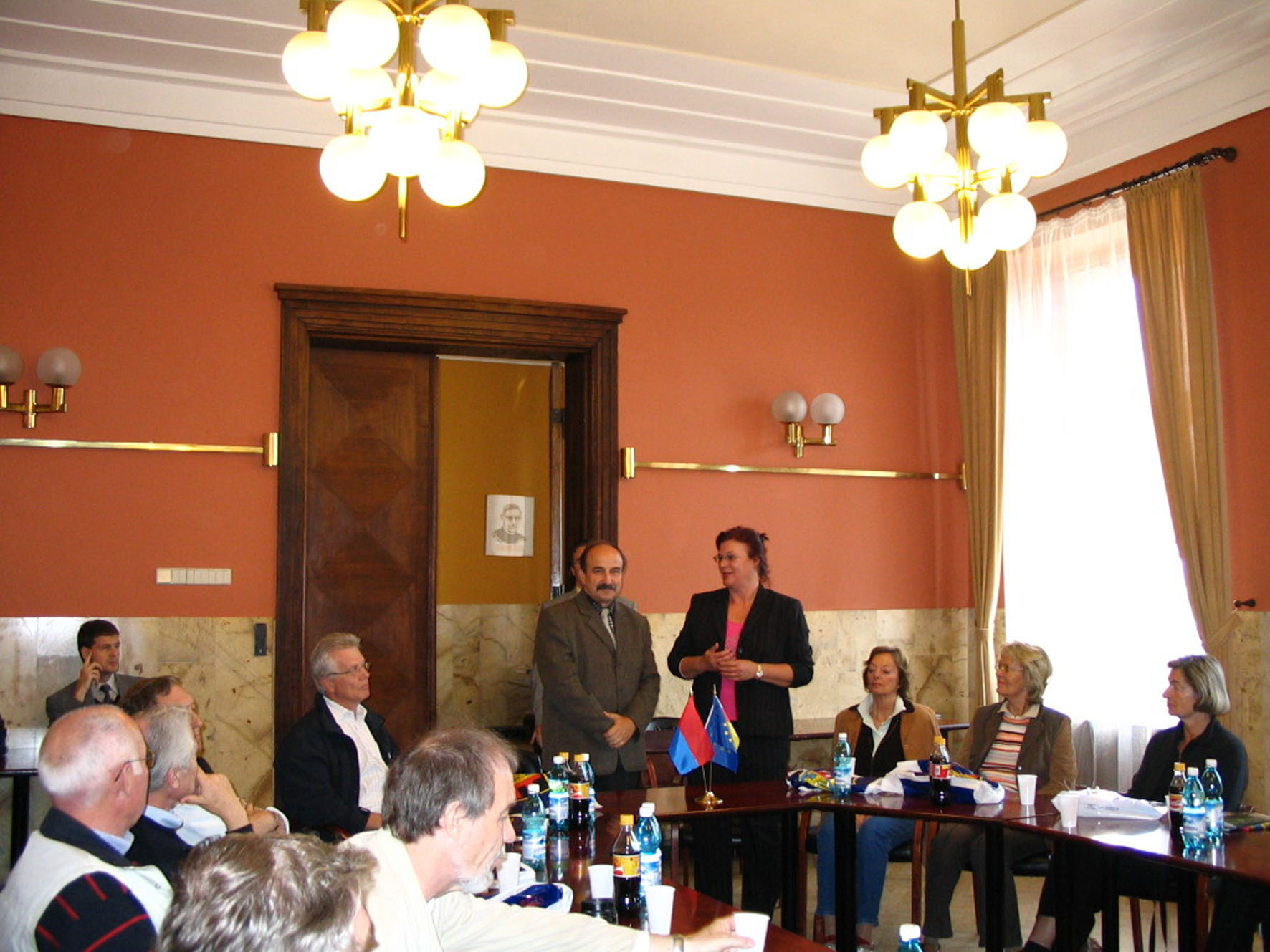 Joachim Otte (Bildmitte), Vizepräsident von Chorzów, informiert die Teilnehmer der VHS-Studienreise über besondere Merkmale der Stadt, ihre Geschichte und die kommunale Verwaltungsstruktur.