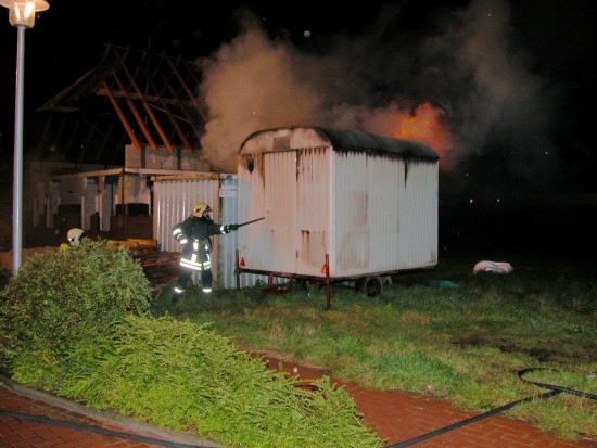 Brand eines Bauwagens