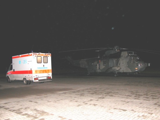 Auf dem Flugplatz Norddeich hat der Rettungsdienst eine Person von einem SAR-Hubschrauber übernommen