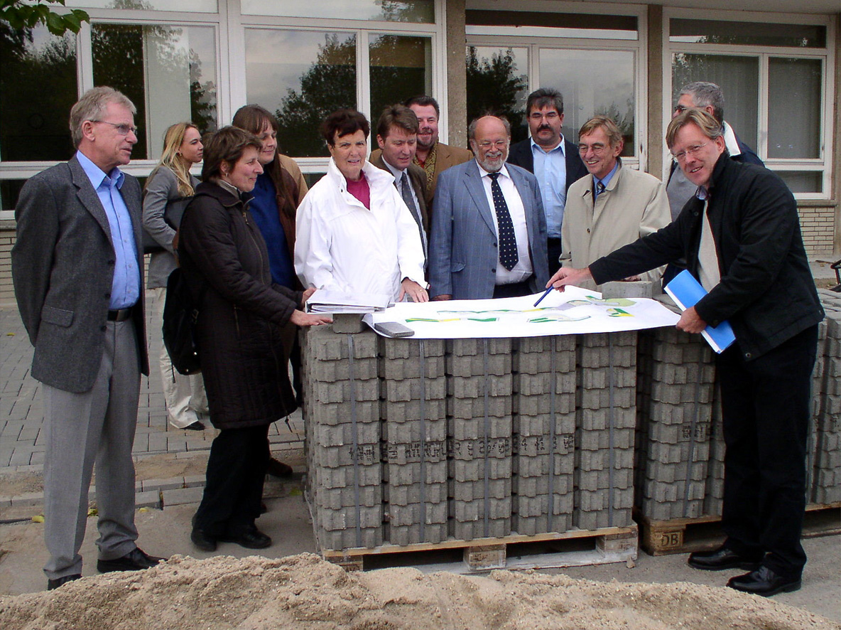 Vertreter aus Politik und Verwaltung der Stadt Iserlohn, der Bundesagentur für Arbeit Iserlohn, der Ausbildungs- und Beschäftigungsgesellschaft des bfw, des Landschafts-Architekturbüros Hoff und der Lokalen Agenda ließen sich auf dem Außengelände der Letmather Kilian- und Brabeckschule die Pläne zur Neugestaltung der Schulhöfe erläutern. Hier startete der erste Bauabschnitt, in dem insgesamt vier Iserlohner Schulhöfe umgestaltet werden sollen.