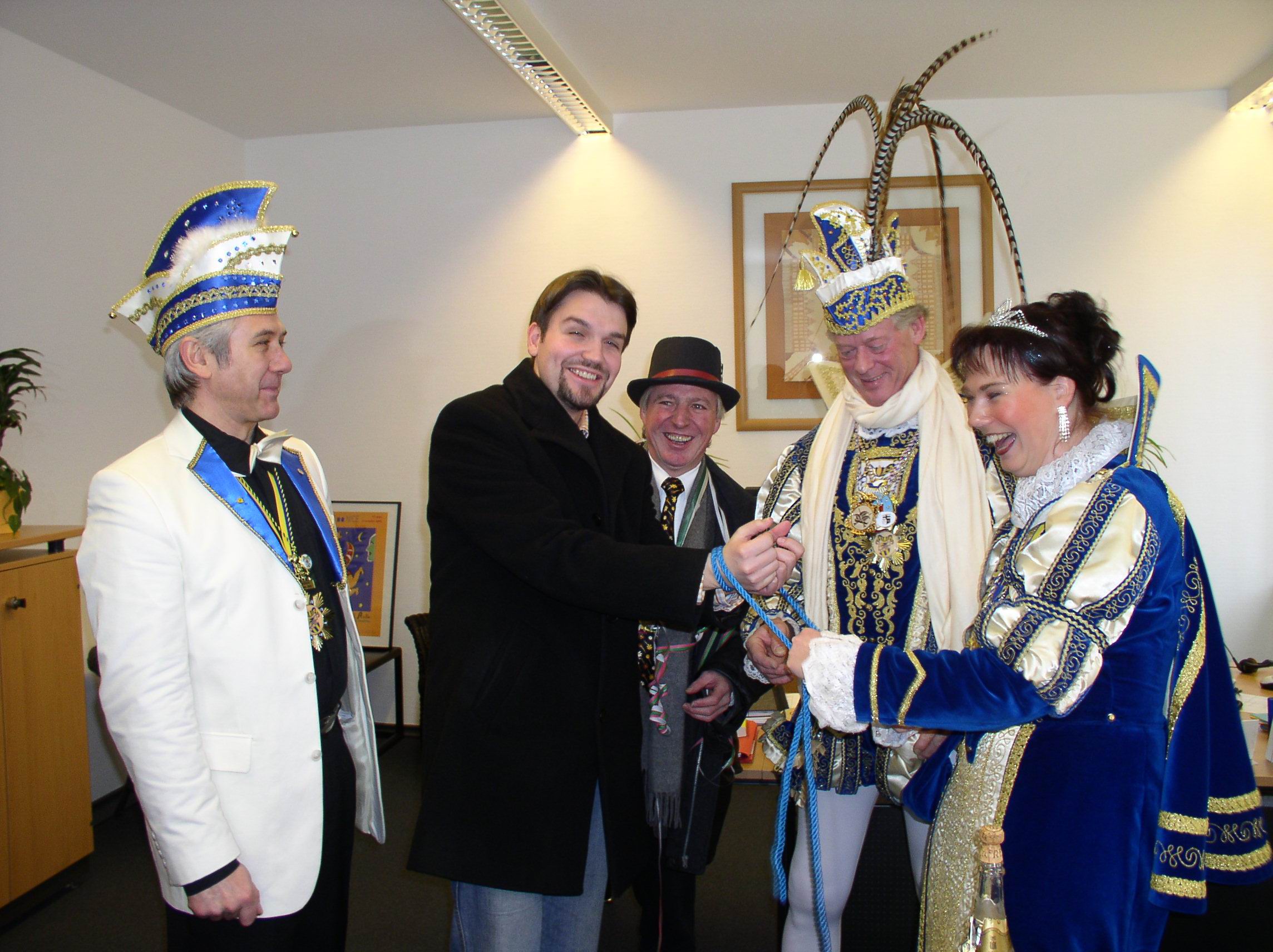 Prinzessin Conny I. und Prinz Wolfgang I. nehmen Bürgermeister Dr. Uli Paetzel im Rathaus "gefangen".