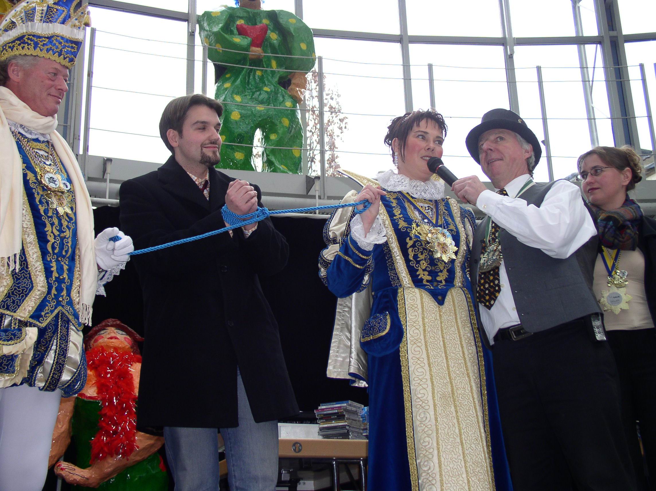 Der gefangene Bürgermeister wird dem närrischen Volk präsentiert.
