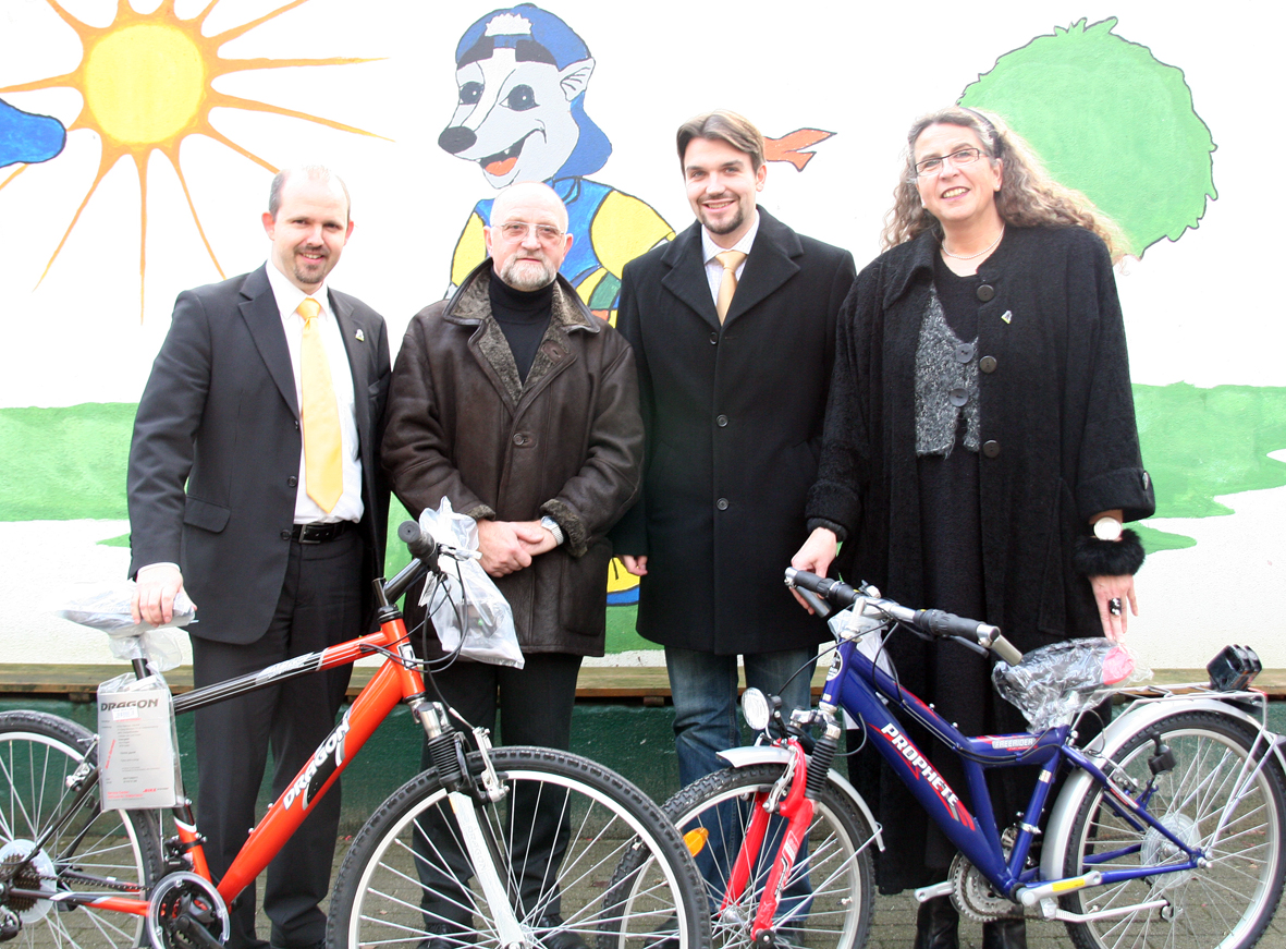 (v.l.) stellvertrender Einrichtungsleiter Ansgar Funcke, Hans Steimel, Bürgermeister Dr. Uli Paetzel und Einrichtungsleiterin Annette Oduro-Boadi