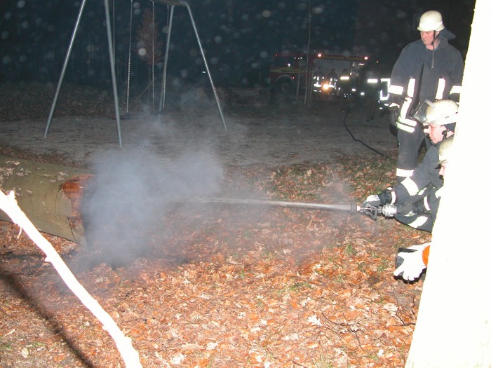 Medienarchiv Foto 1: "Brennender Baumstamm auf Kinderspielplatz"
