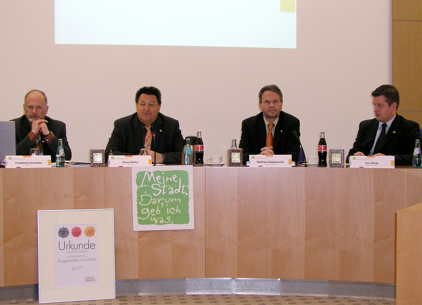 Stellten die Sponsoring-Aktion “Meine Stadt. Darum geb’ ich was.” im Rahmen einer Fachkonferenz im Iserlohner Rathaus vor (v.l.n.r.): Ressortleiter Friedhelm Kowalski, Bürgermeister Klaus Müller sowie Wolfram Heidenreich und Eric Wilde von der Agentur Buttgereit und Heidenreich.