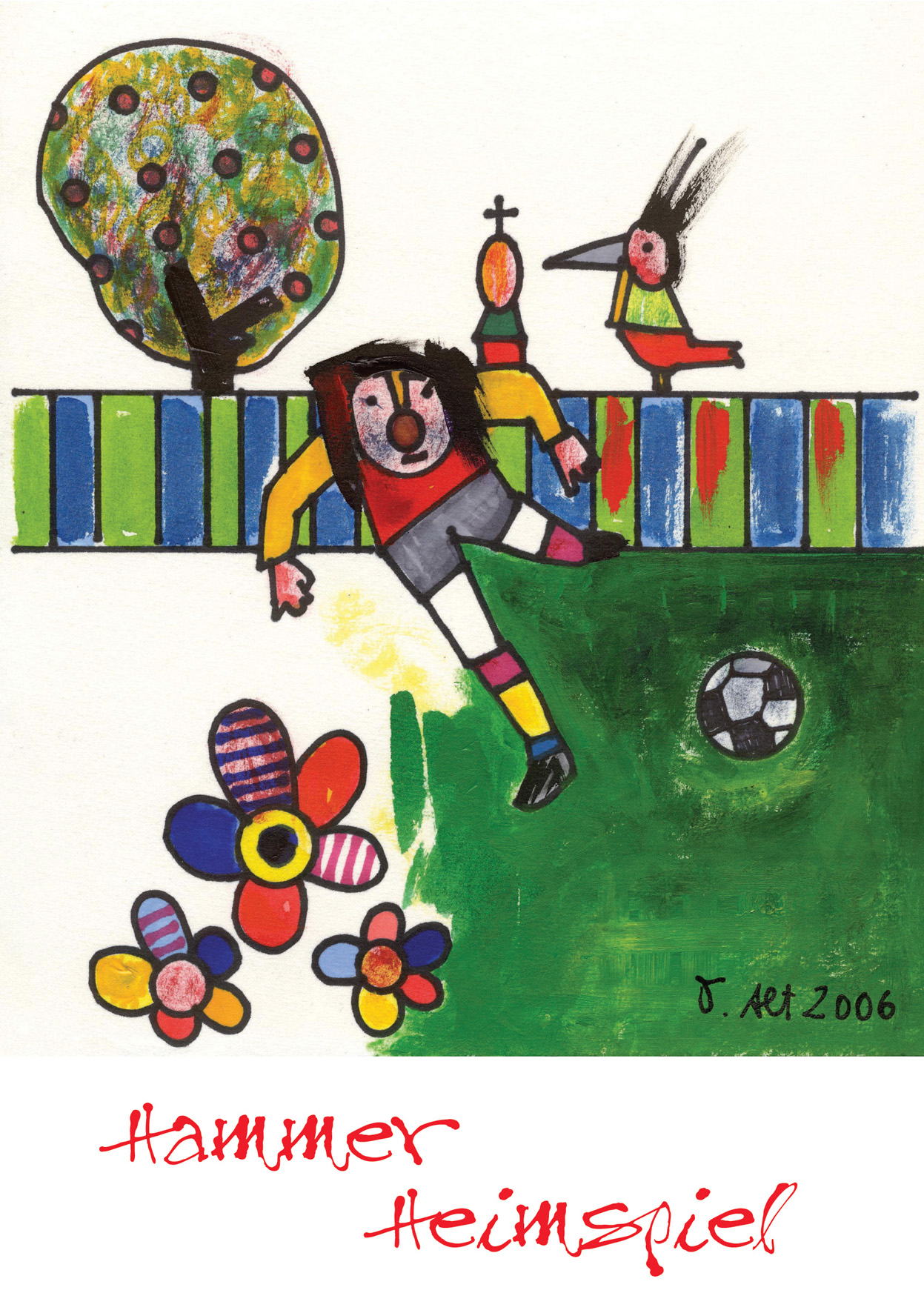 Der Hammer Künstler Otmar Alt hat das Cover für die Broschüre "Hammer Heimspiel" gestaltet. Der Titel des Bildes lautet "Querpass"